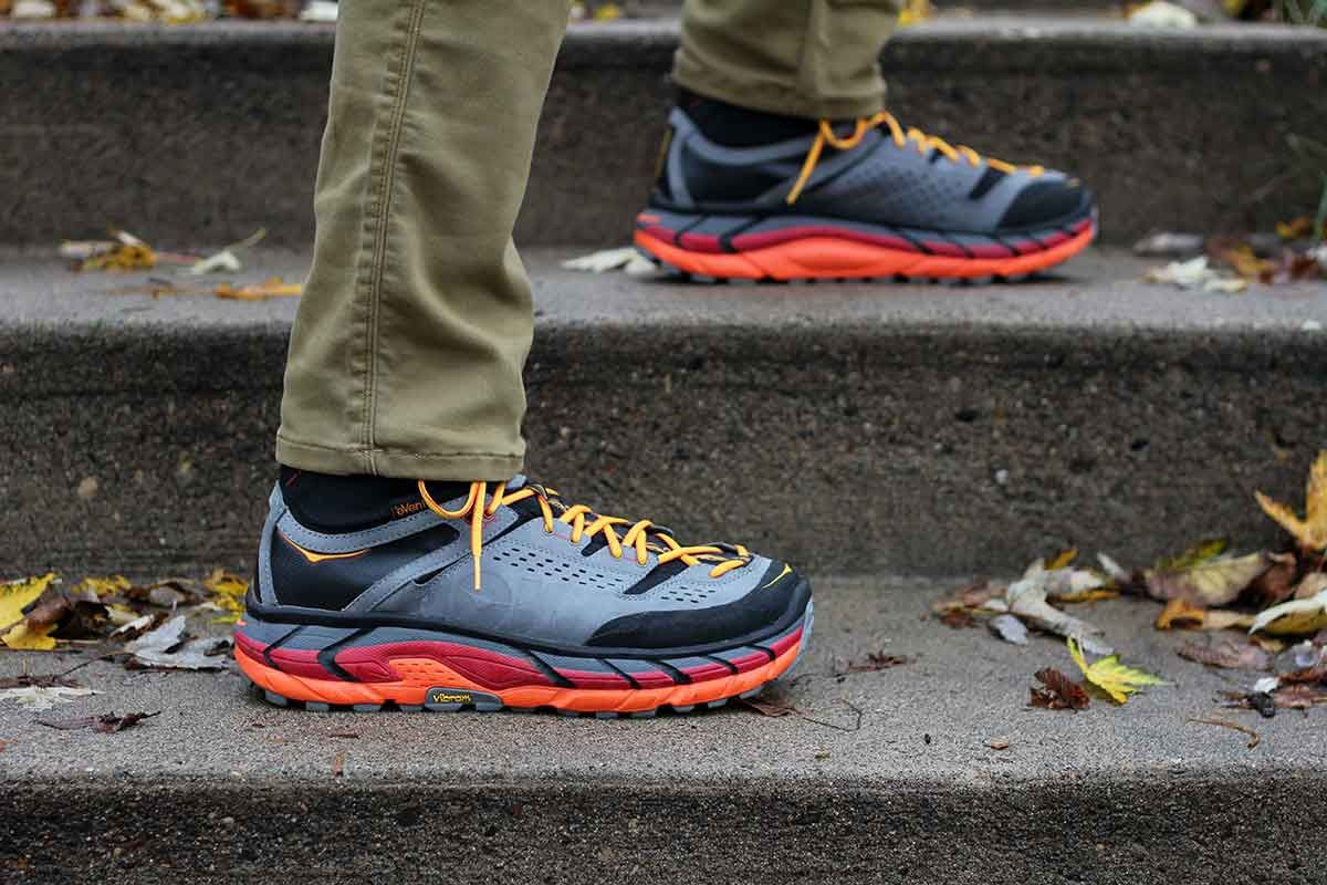 Speaking of heavy duty shoes one can not mention Hoka Hiking boots. The Ultra Hi WP model is a hybrid between a sneaker and a workboot. The concept immediately brings in mind the word that Balenciaga spoke about their new sneakers. The most resembling parts between Hoka Ultra Hi WP and Balenciaga Triple-S are the trekking shoes-like laces, the lacing system and the sole. Ultra Hi WP in fact present a stacked sole between classic Hoka cushioning sole, a blend of EVA and RMAT mid-sole and a Megagrip Vibram out sole.