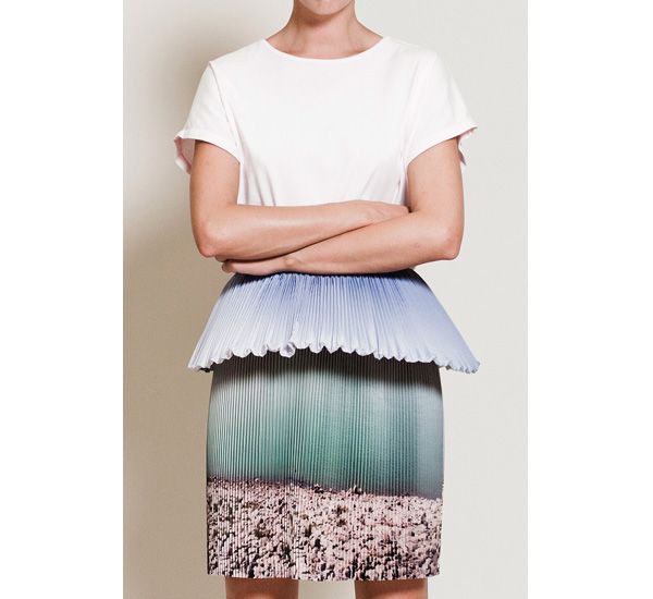 Landscapes becoming a photography, then a print, and at the end a dress. And a manner of wearing-hearing it.