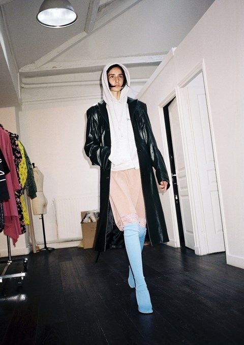 Fa parte della sua gang parigina anche il fotografo Pierre-Ange Carlotti – bff, tral’altro, anche di Clara 3000 e Jacquemus – che ha approfittato dei fitting dell’ultimo show del brand a Parigi per scattare il look book della collezione SS16. Tra grembiuli da lavoro, abiti fiorati, stivali effetto seconda pelle, scritte gotiche e ciniglia color lilla, rivivrete tutto il pathos dello show e rifletterete sul perché non avevate mai pensato di indossare una tuta sportiva con i tacchi prima.