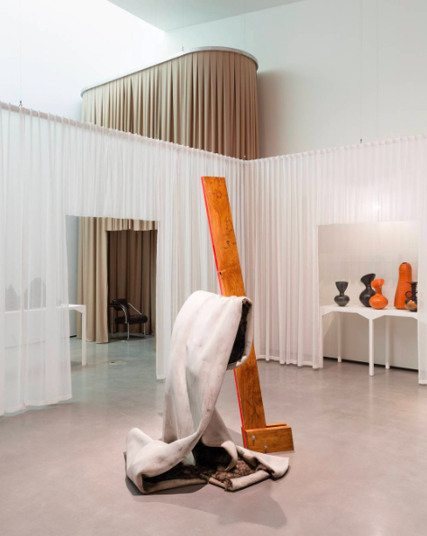 La mostra si snoda lungo l’intero spazio della galleria in interni creati appositamente da Tom Emerson e Stephanie Macdonald dello studio d’architettura 6a, per garantire un’esperienza completa e contrastante.