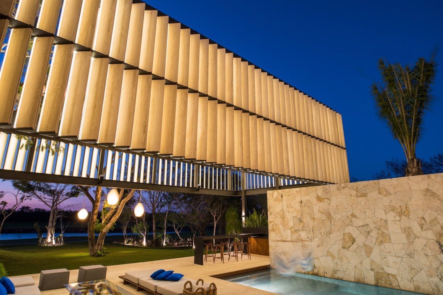 I pozzi e le grotte calcaree sommerse che punteggiano la penisola dello Yucatán sono rievocati dalla piscina, anche se sarebbe meglio parlare di zona relax dotata di bar e salotto.