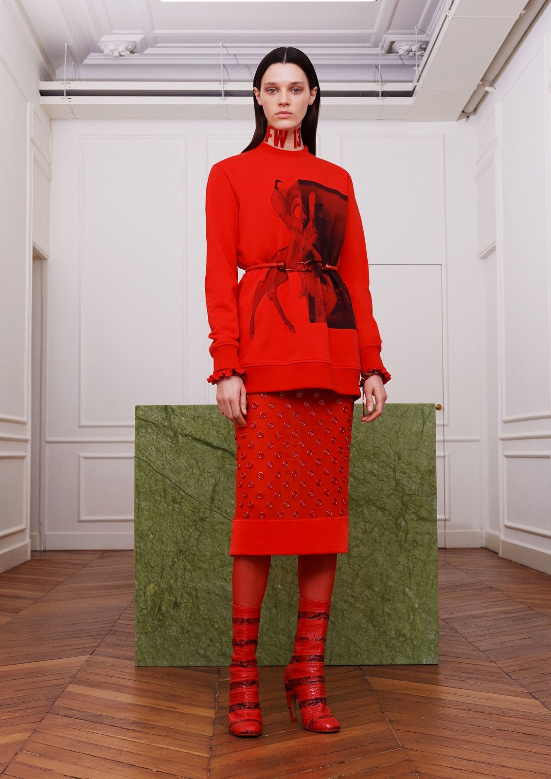 L'ufficio stile di Givenchy, orfano di un direttore d'orchestra, attinge dal proprio DNA e da 12 anni di look meravigliosi che, nati dalla creatività del talento italiano, hanno riportato la label francese sotto i riflettori della moda contemporanea internazionale. I pezzi scelti? La famosa felpa con Bambi, la T-shirt con impressa la faccia della Madonna, body, gli abiti da sera ricamati, gli stivali da equitazione al ginocchio, gonne con le ruches, pantaloni fluidi, giacche da smoking, cappotti. Ogni look avrà un'etichetta vintage che indica la stagione d'origine del modello rivisitato e sarà disponibile anche in nero e in nude.