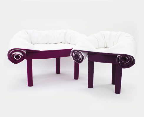 For the cycle "urban contaminations" in the design, the convertible pouf Collerette, with covered rolled as back, mimes the wills of an Ionic capital.