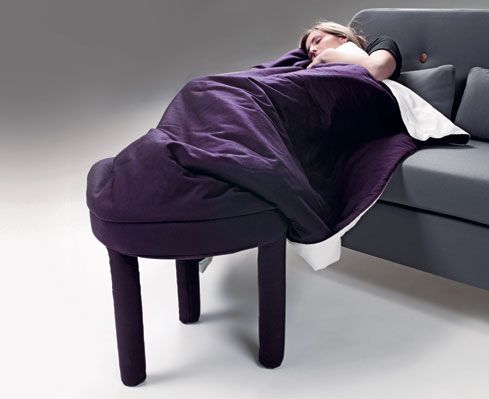 Per il ciclo “contaminazioni urbane” nel design, il pouf trasformabile Collerette, con coperta arrotolata che funge da schienale, mima le volute di un capitello ionico.
