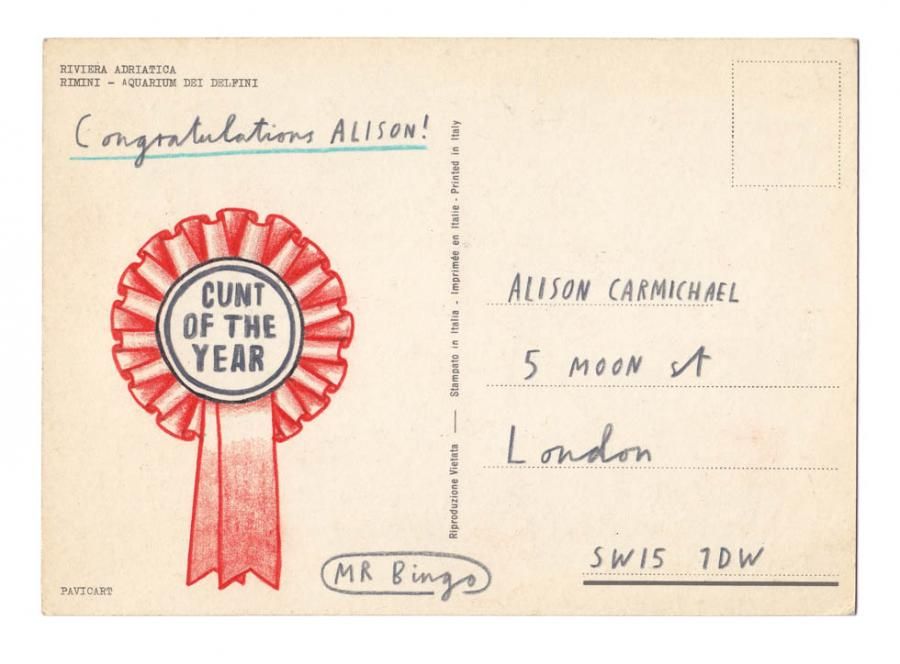 Mr. Bingo, a Londener illustrator, presents his book inspired by Hate Mail project - a paid service where you can ask to send somebody an offensive postcard - which was born by a drastic hangover where he invited people by twitter to discuss with him. 50 people more less replied so he decided to start the bussiness of the insults.