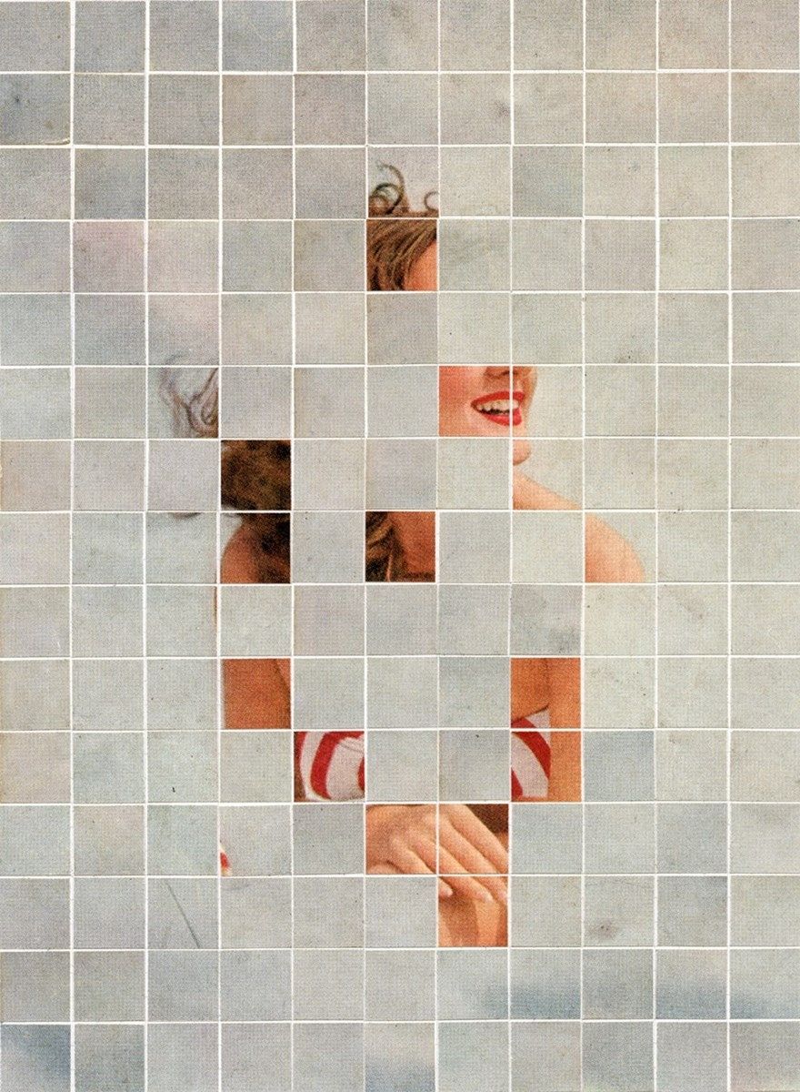 Artist and photographer Anthony Gerace creates dreamy compositions in paper – often working chromatically, and using tiles to give an abstract effect. "I’m really curious as to where the threshold point for a subject is" he explains of his approach. "How much can you remove before the structure collapses; how long before the meaning of the thing you’re looking at gets washed away by kitsch and nostalgia, that kind of thing – and I think collage is the perfect medium to deal with and genuflect upon that".