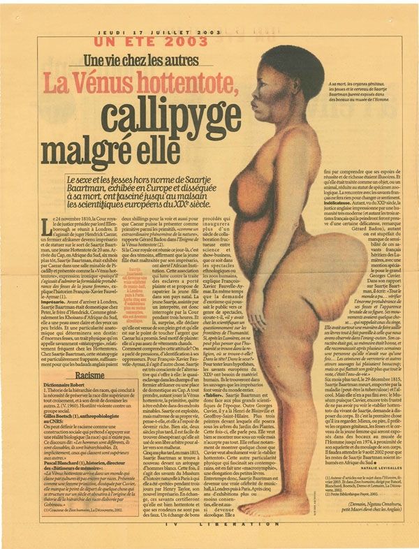 The woman, belonging to the Khoikhoi culture, became the protagonist of numerous freak shows in the city of London which took her away from slavery in Holland. After her death, occurred when she was just 25, her body was dissected to be studied and then exposed for more than a century at the Musée de l’Homme in Paris.