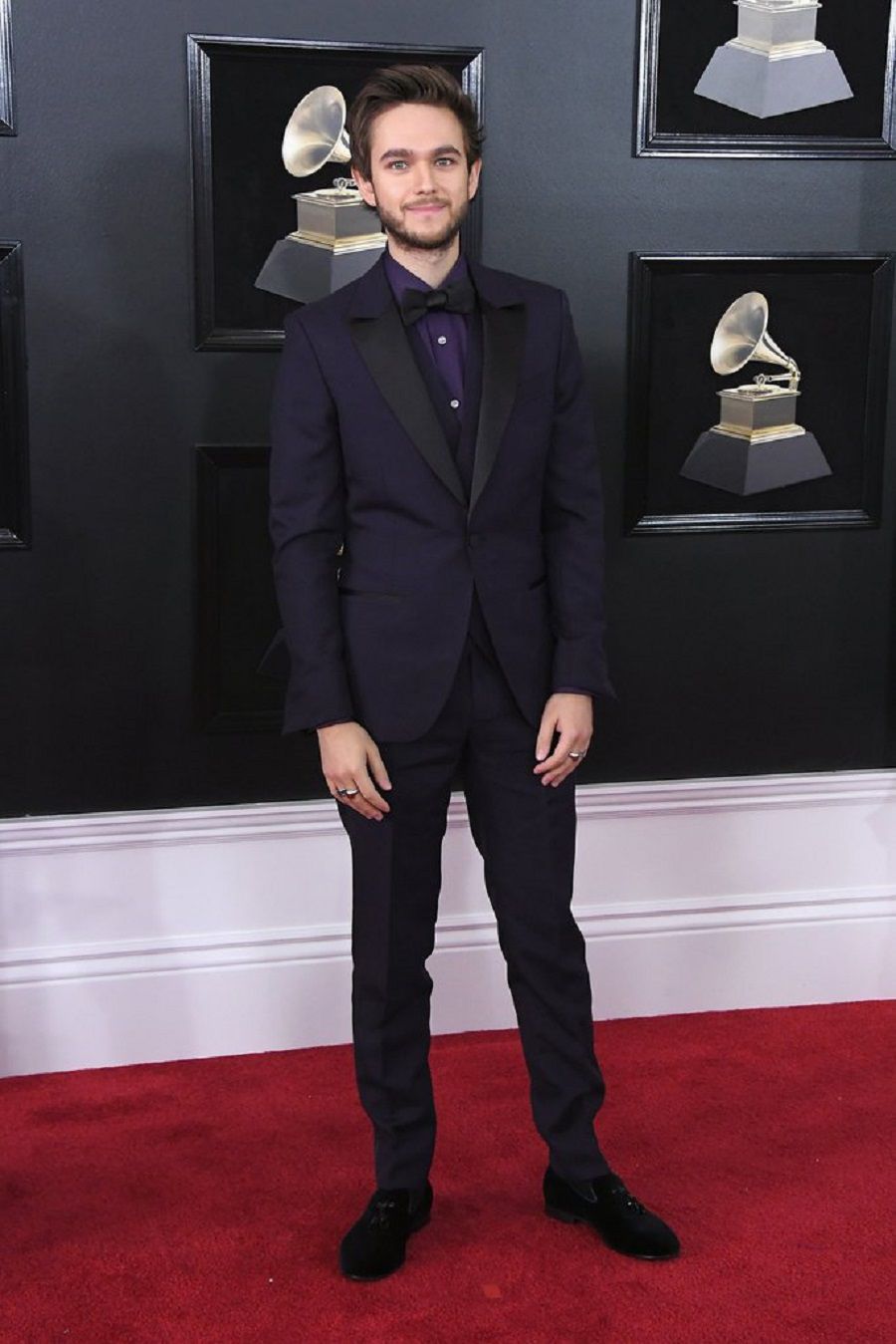 The young DJ Zedd certainly isn't usually exalted for his unique style, but for these Grammy's edition he could select something more "happy" than a purple-black suit.