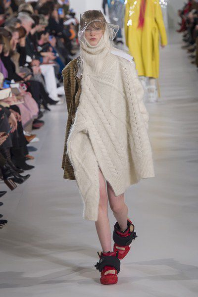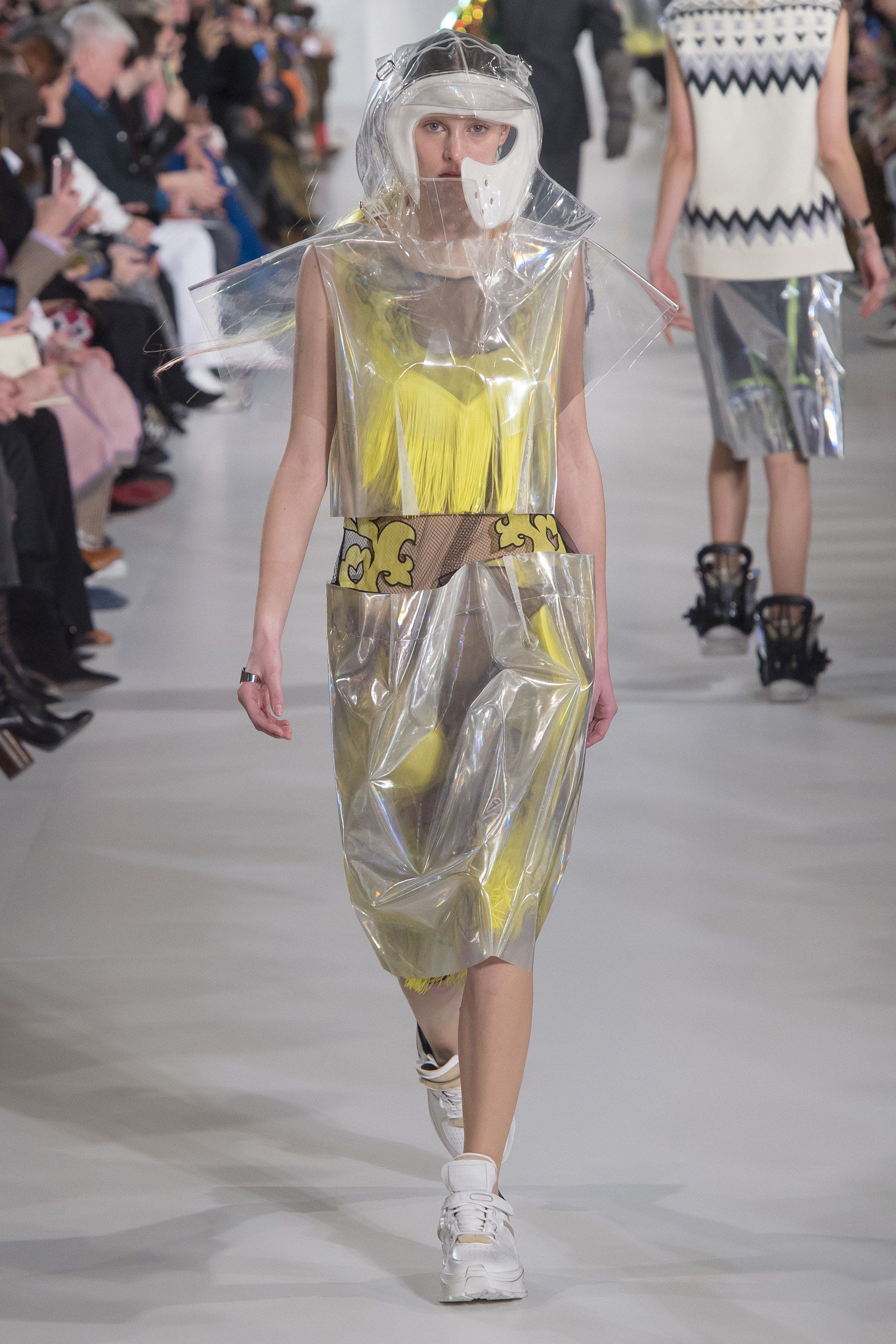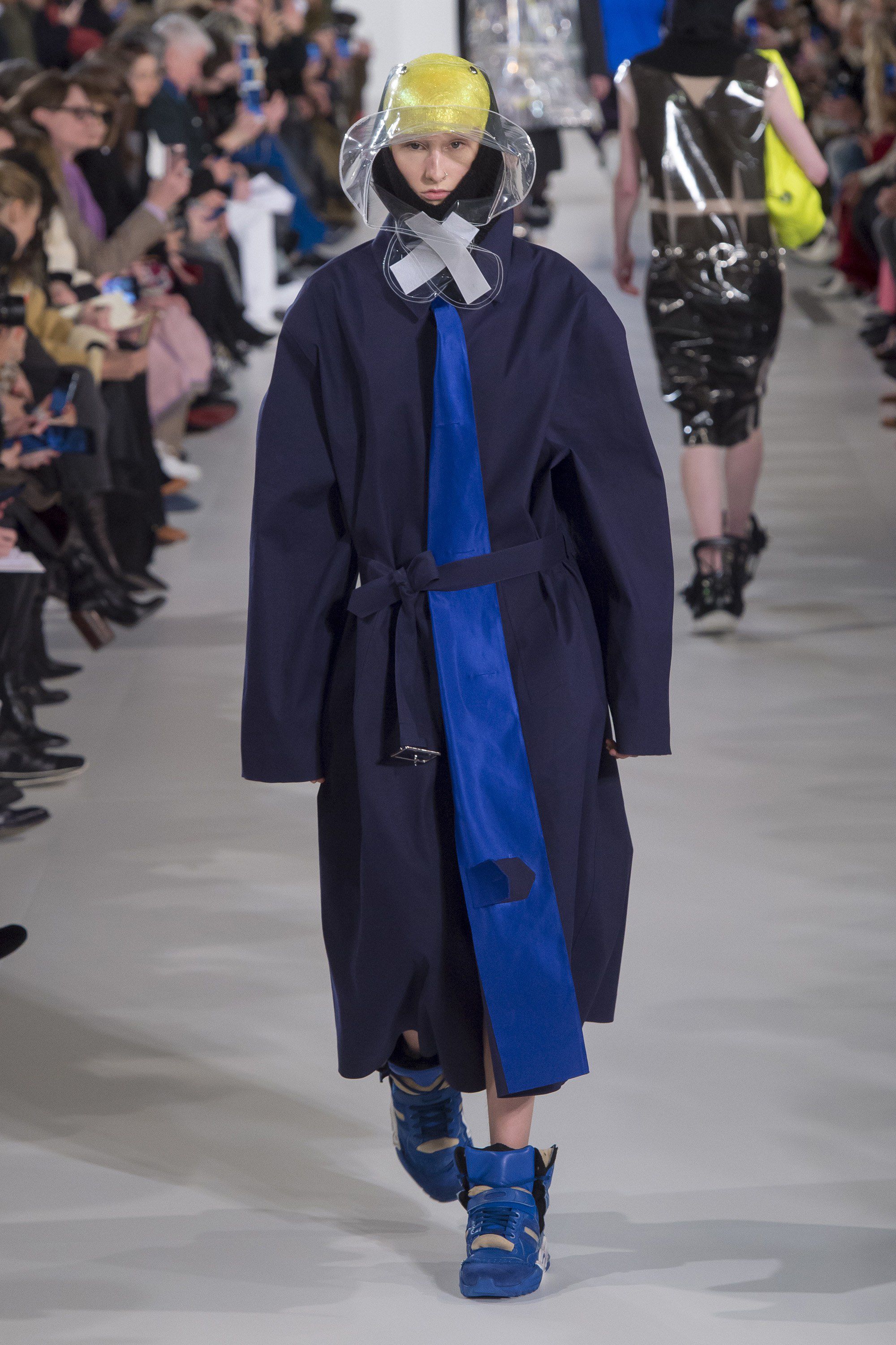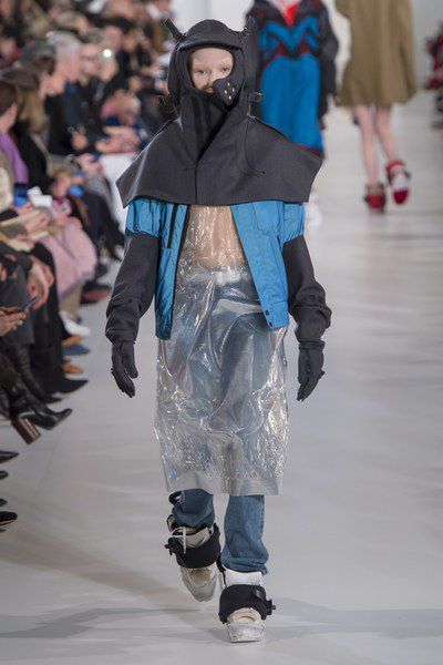 The new Margiela garments are enveloping, warm, oversized, have hoods, PVC helmets that resemble those of the astronauts, are armor designed to protect.