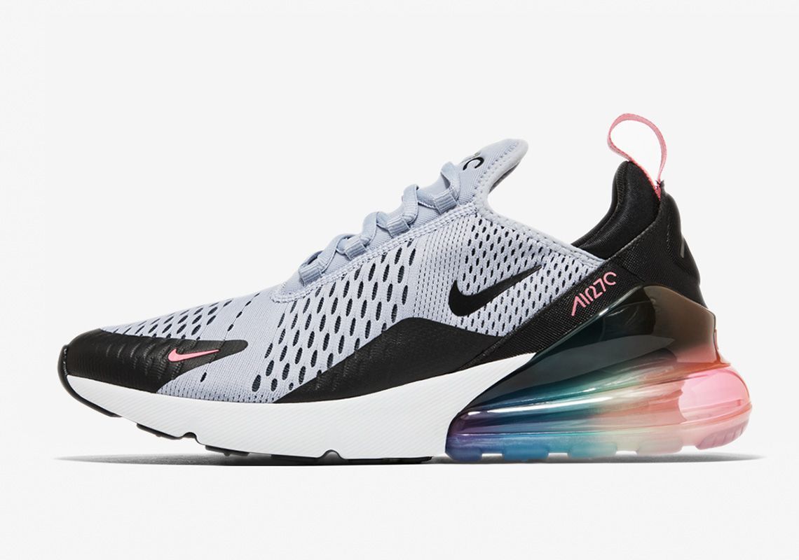 Rainbow hints on the translucent upper complete the color scheme of the shoes.