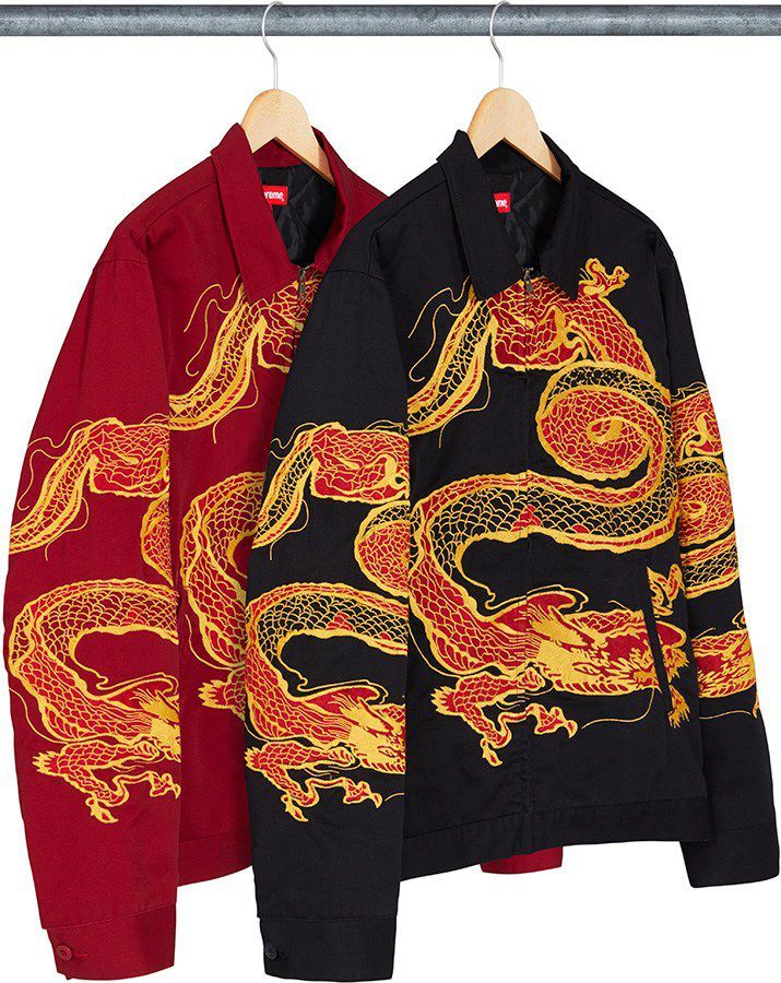 After last weeks hyped collab with Commes des Garcon it is time for yet another round of Supreme drops, and we got the item pics and price list right here. Consisting of the usual suspects with jackets, hoodies, shirts, sweaters, jerseys, pants, and headwear this round has a few items that deserve special attention. First off the amazing dragon work jacket and pants, which is one of the best pieces from the whole FW season. Then there is the collaboration with American artist Tabboo! on two Hooded Sweatshirts, two T-Shirts and a 6-Panel Hat. Also in this round, sees Wu-Tang enter the Supreme chambers with a GZA print t-shirt featuring his Liquid Swords album art. The wild card in this round is a pair of Magnetic Bike Lights created in collaboration with Lucetta®.