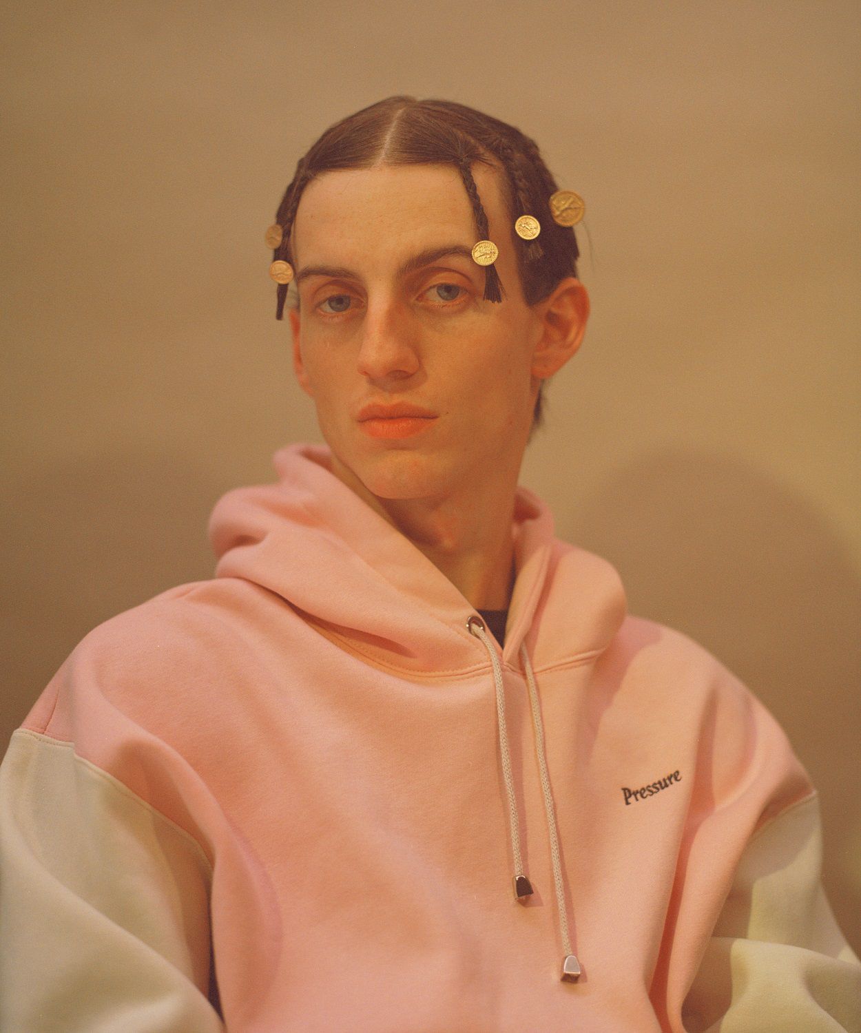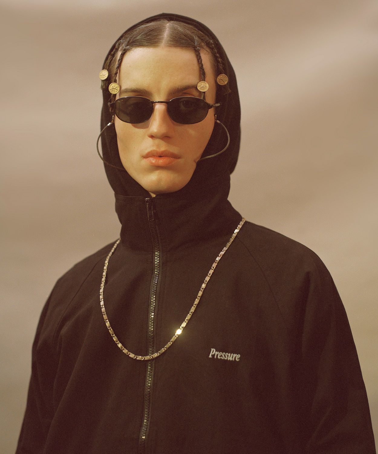 With these words, Théodoros Gennitsakis describes his creature, Pressure Paris, an eclectic project (creative agency, magazine, fashion brand), characterized by a Mediterranean mood. A detail that the French designer with Greek origin infuses in every aspect of his work, like a warm light that envelops and illuminates even in the coldest and darkest days. Those without sun. The same told in the lookbook of the latest FW19 collection. The idea behind SUN AUTOTUNE is, in fact, to create a series of winter garments with a solar soul: sweatshirts with and without hoods, joggers, jackets. A selection of basic pieces, with a relaxed fit, declined in black and white with some splashes of pale pink and orange shades.