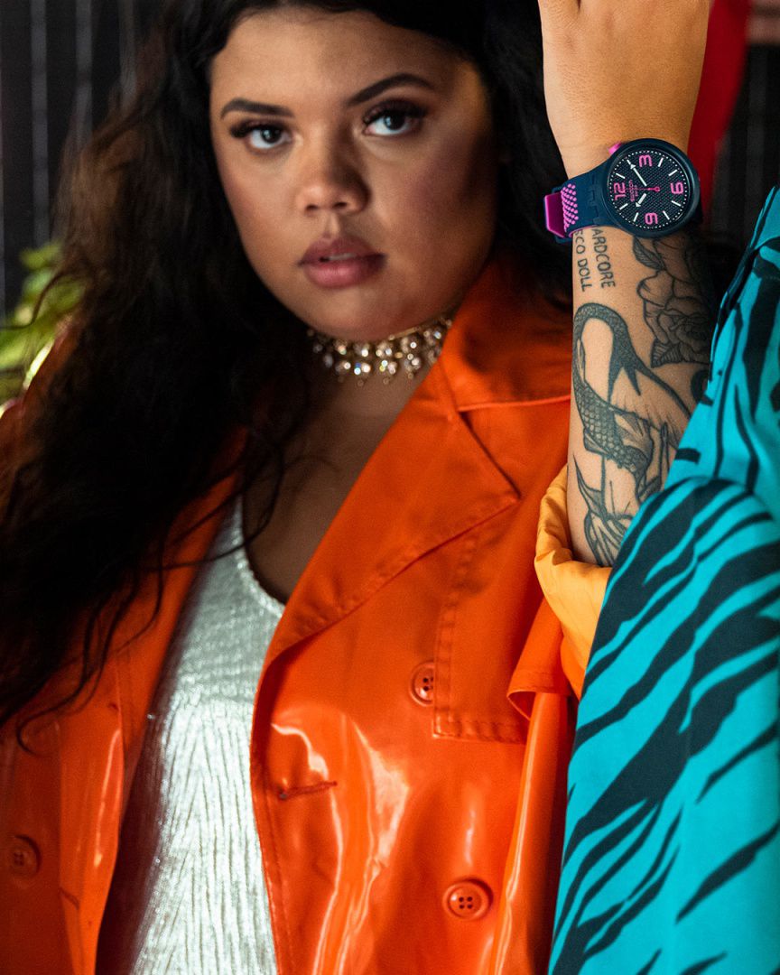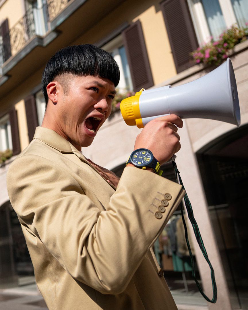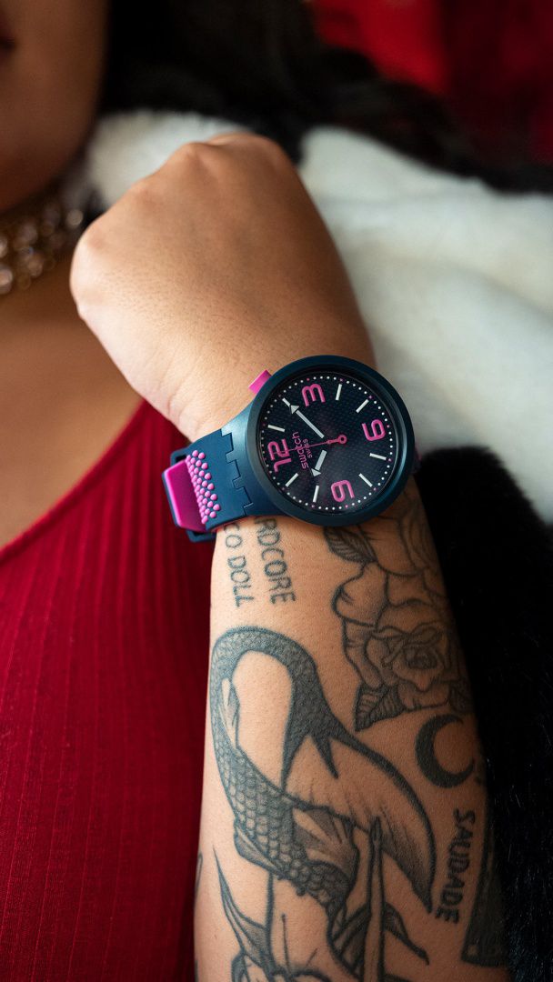 Perfectly in line with the bold and disruptive nature of its creations, Swatch unveils these new four models through unprecedented and unexpected storytelling. Italian faces of the collection are strong, unapologetic and fearless personalities. Wearing the new BIG BOLD pieces we find Mike Lennon, Maurizio Tentella, Oscaritos's Way and Maya Silva De Souza, all with their own unique selves, embracing totally the bold nature of Swatch's watches.