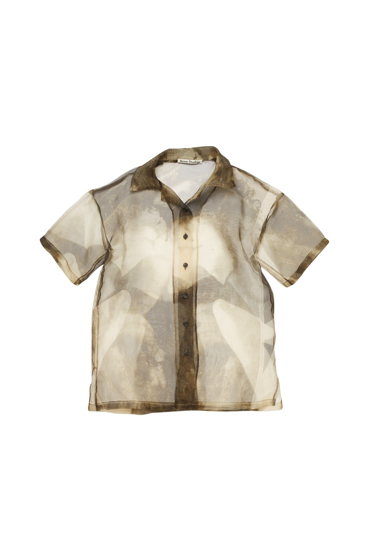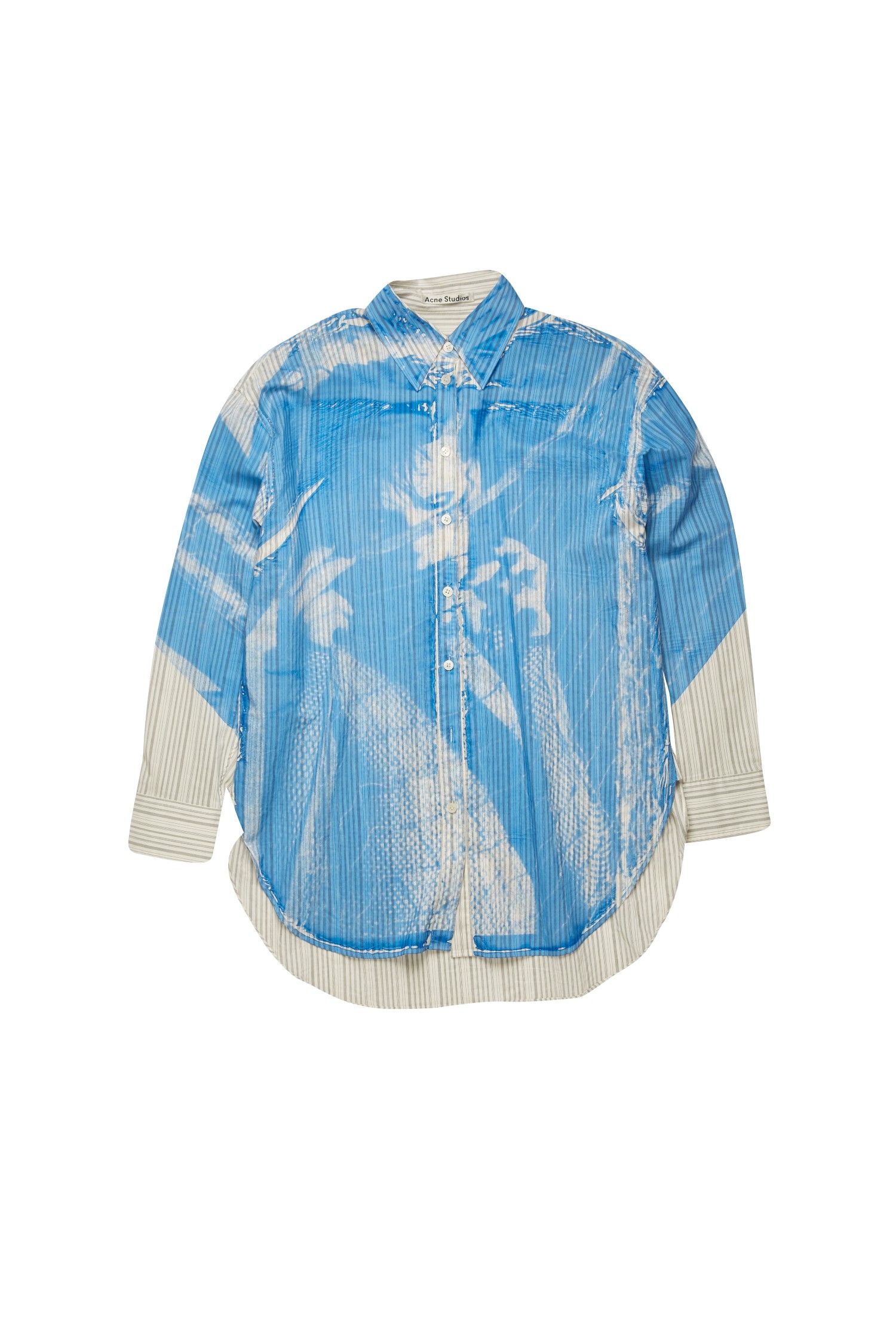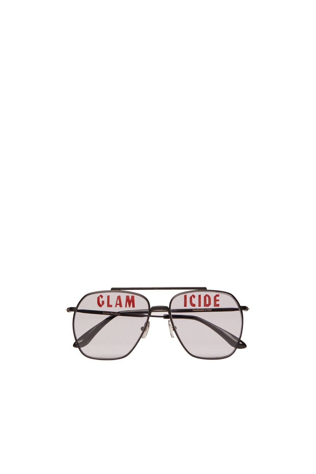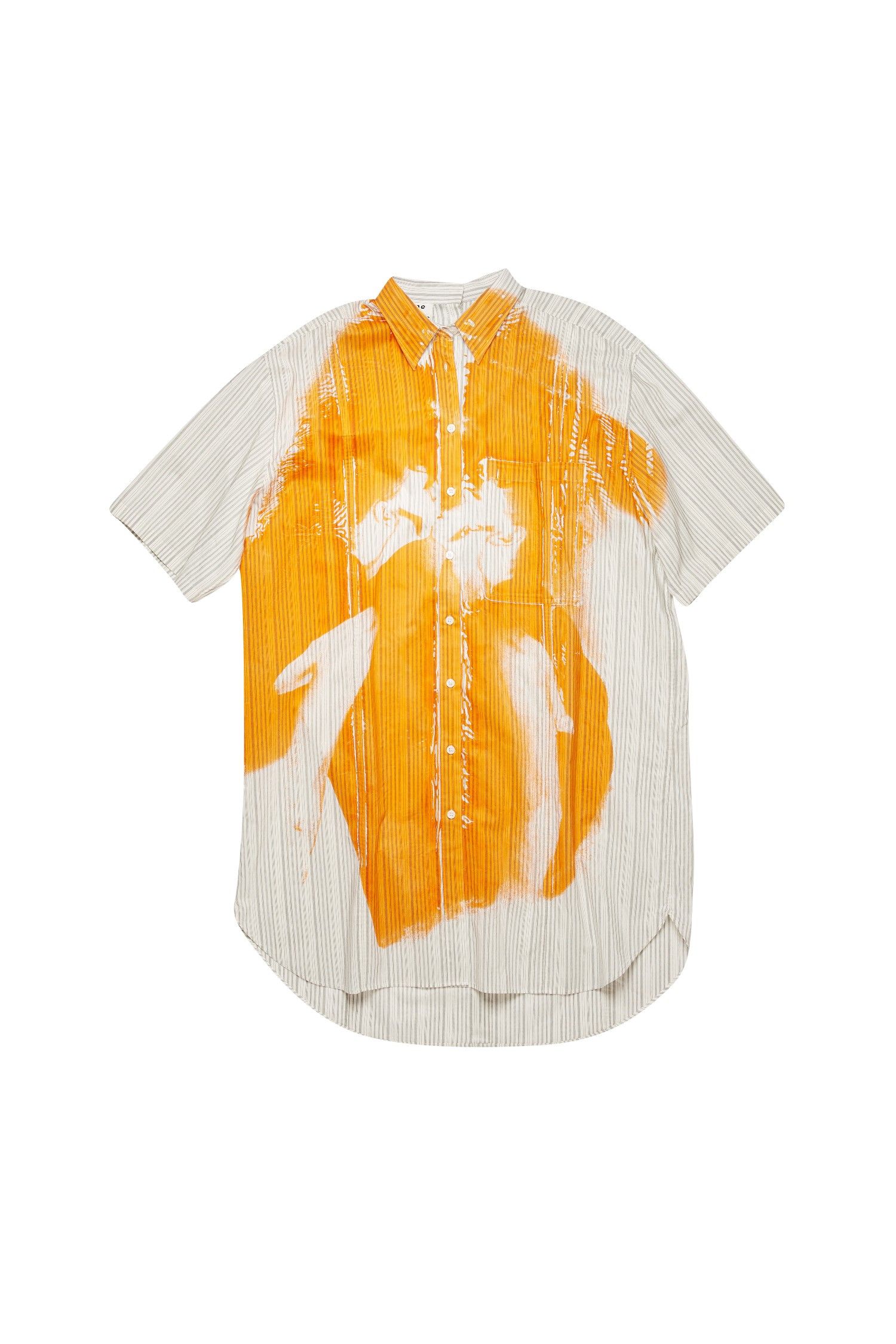 The collection is inspired not so much by Berger's photos but by the magazine as such and for this reason includes typographic elements and magazine covers alongside references to the clubbing world and gothic-punk subculture. The shirts make up a large part of the proposal in both the cotton, organza and poplin versions, all decorated with digital prints. In particular, the black poplin shirt has the print "Glamicide" on the chest while the chemisier is in jacquard cotton with off-white and black stripes. More conventional items, such as contrast-collar t-shirts, crewneck sweatshirts and 1977 jeans are decorated with newspaper graphics and covers, while accessories consist of leather goods, scarves and a pair of sunglasses with red lettering printed directly on the lenses.