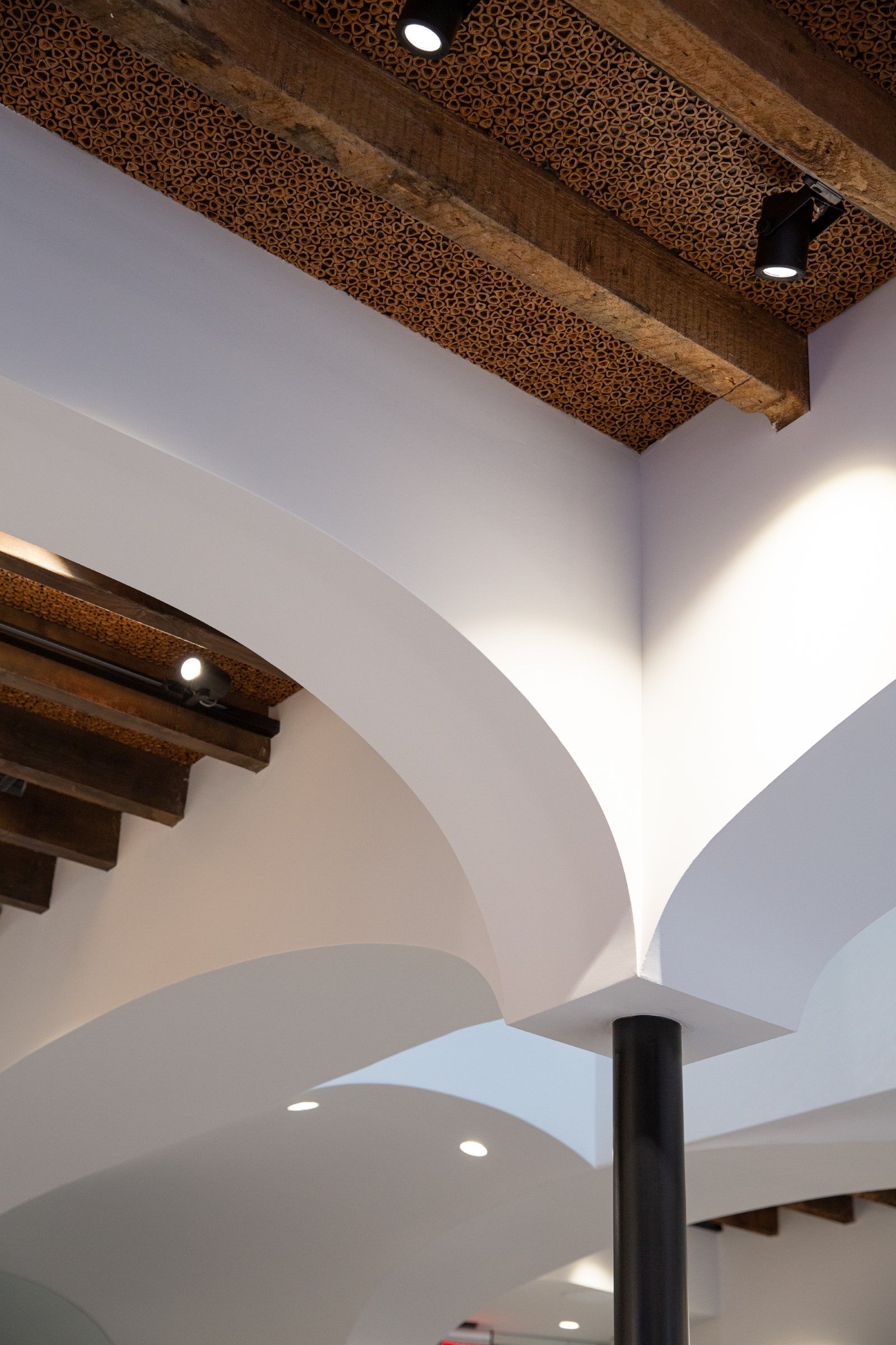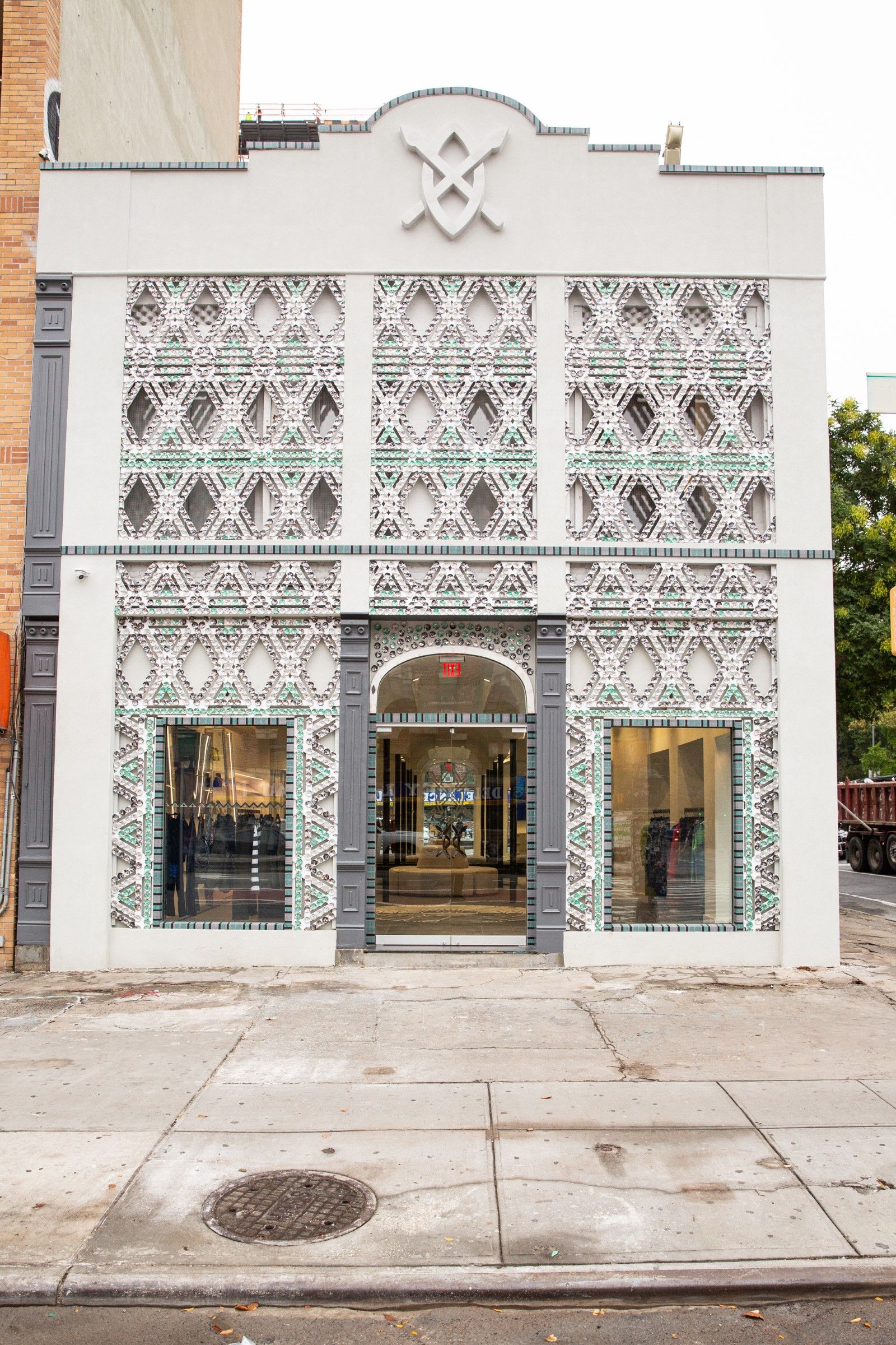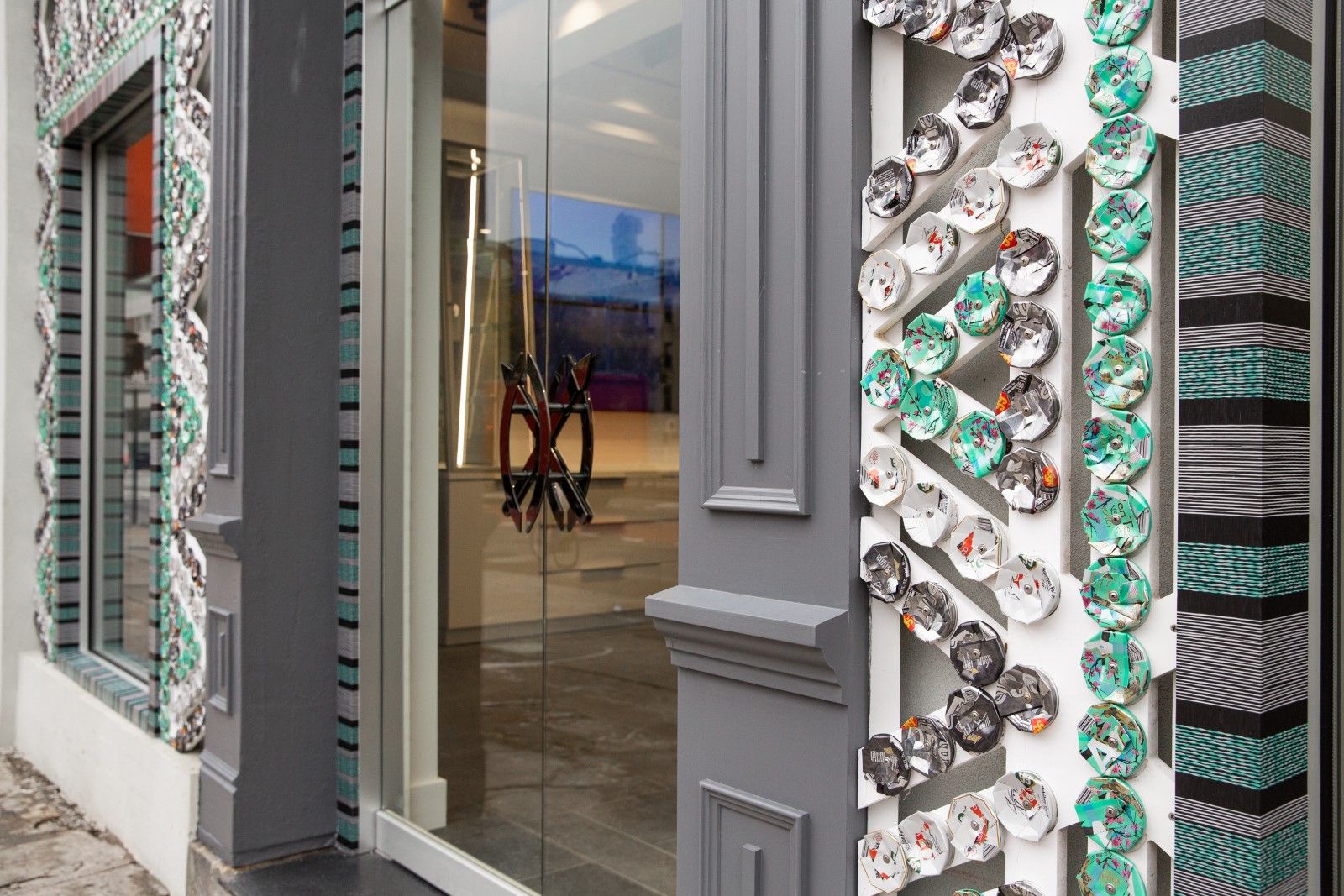 The space, designed by Heather Faulding of the 4plus Design studio, wants to be a physical manifestation of the brand's spirit. The exterior is inspired by classic Flemish architecture, with its ornate gables and a wall covered with rounded plates that evokes African pearls instead. Inside there are statues on their pedestals, a mosaic floor, skylights and decorations that evoke the feeling of a museum. On the second floor, between glass floors, skylights and triangular railings inspired by African motifs, there is the lounge space instead.