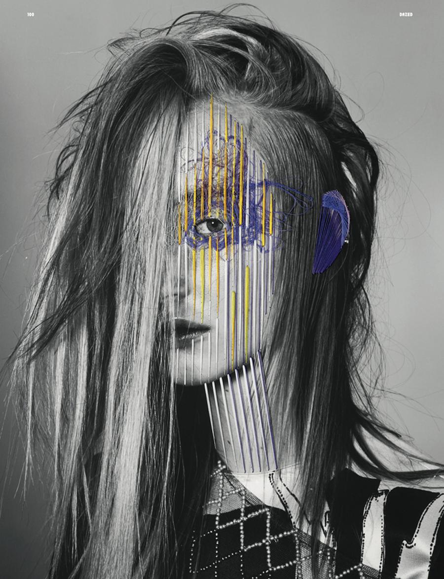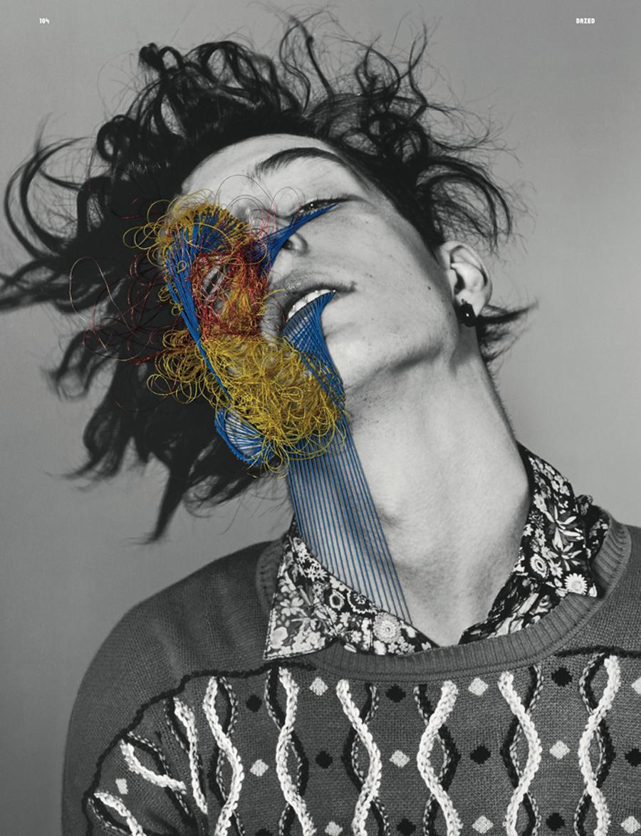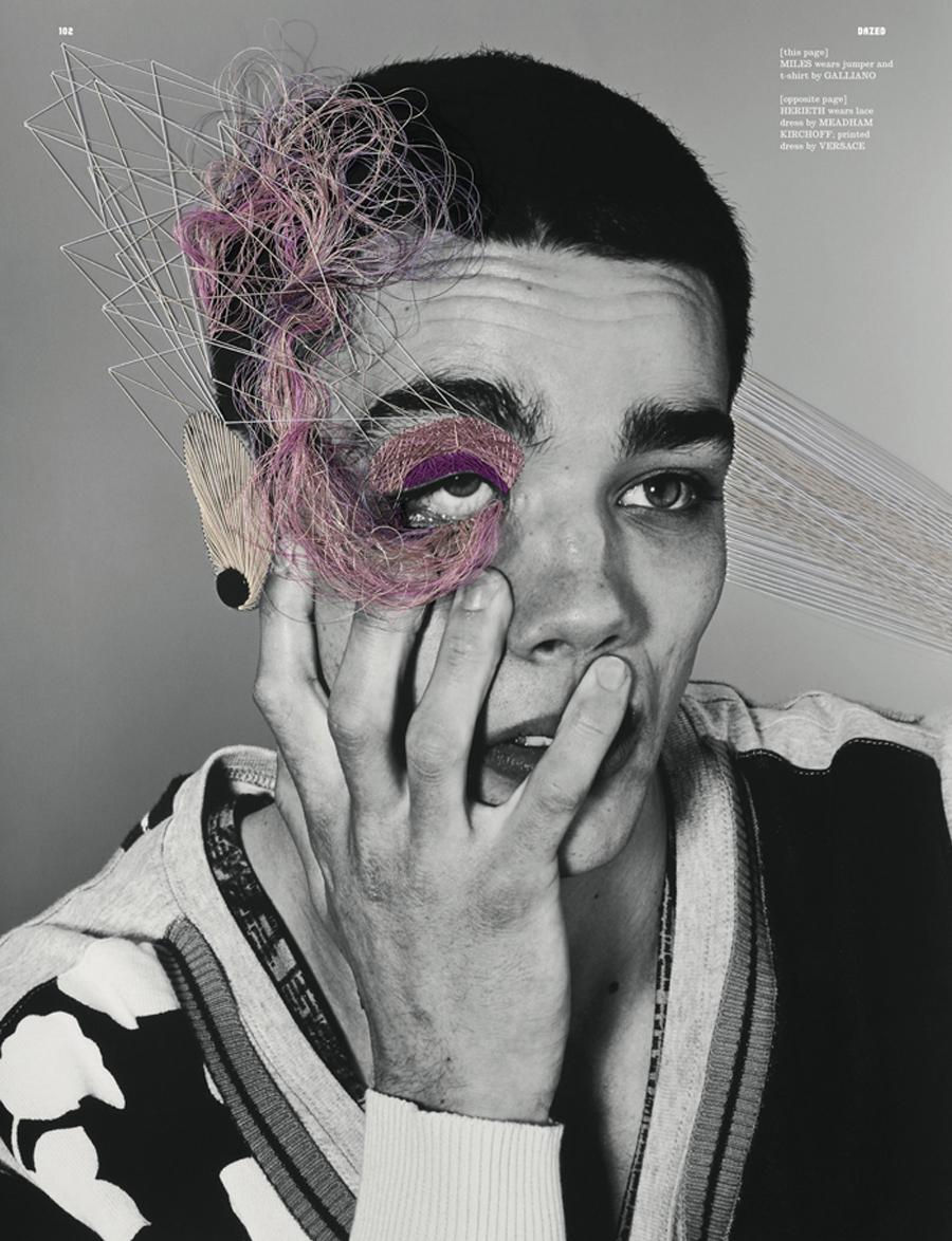 Quando la fotografia prende corpo si fa riferimento a Richard Burdridge. E un esempio lampante il servizio di Dazed&Confused dove la staticità di una foto in bianco e nero prende vita attraverso fibre tessili applcate ad arte.