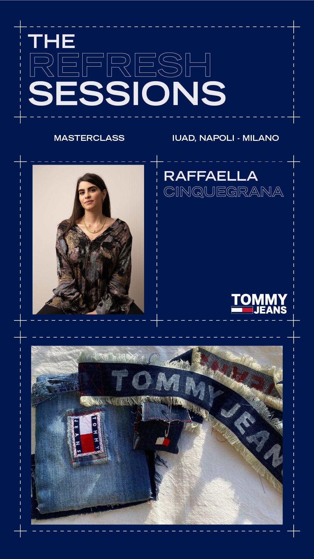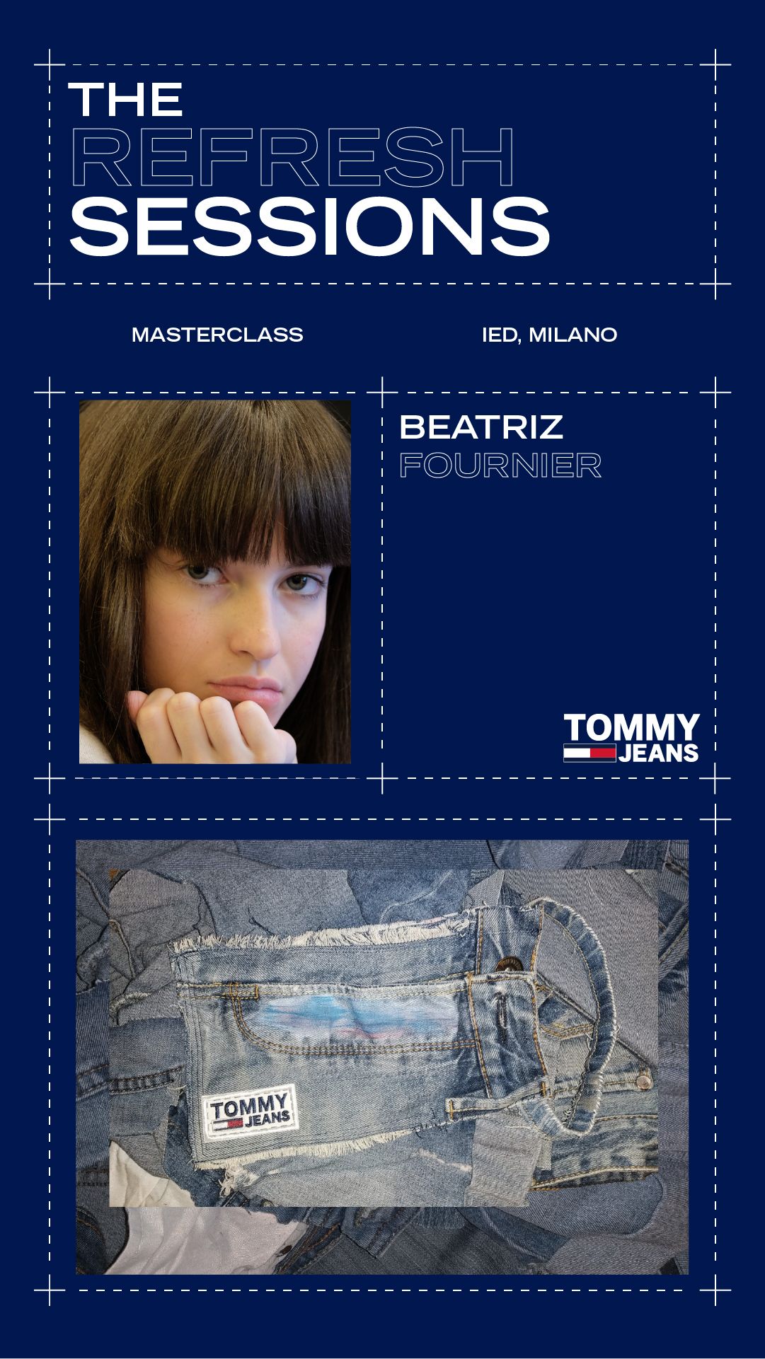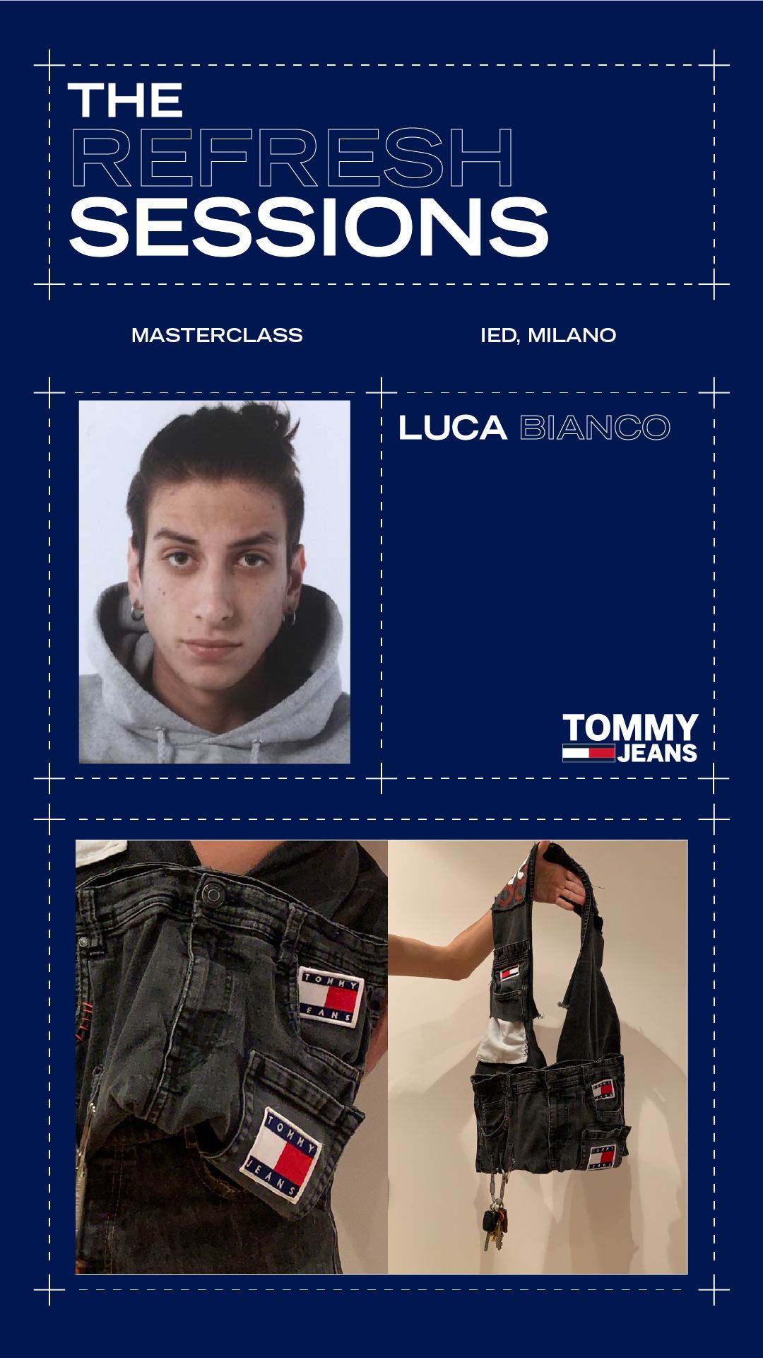 The Refresh Sessions is the digital hub created by Tommy Jeans and nss to give a voice to the new generation of Italian designers. The focus of the project was upcycling: through the digital hub, in fact, the fashion students of IED Milano, IED Torino, IUAD Napoli-Milano and Polimoda Firenze had the opportunity to explore the world of denim by transforming old garments into a new creation through a method of online teaching at a distance.