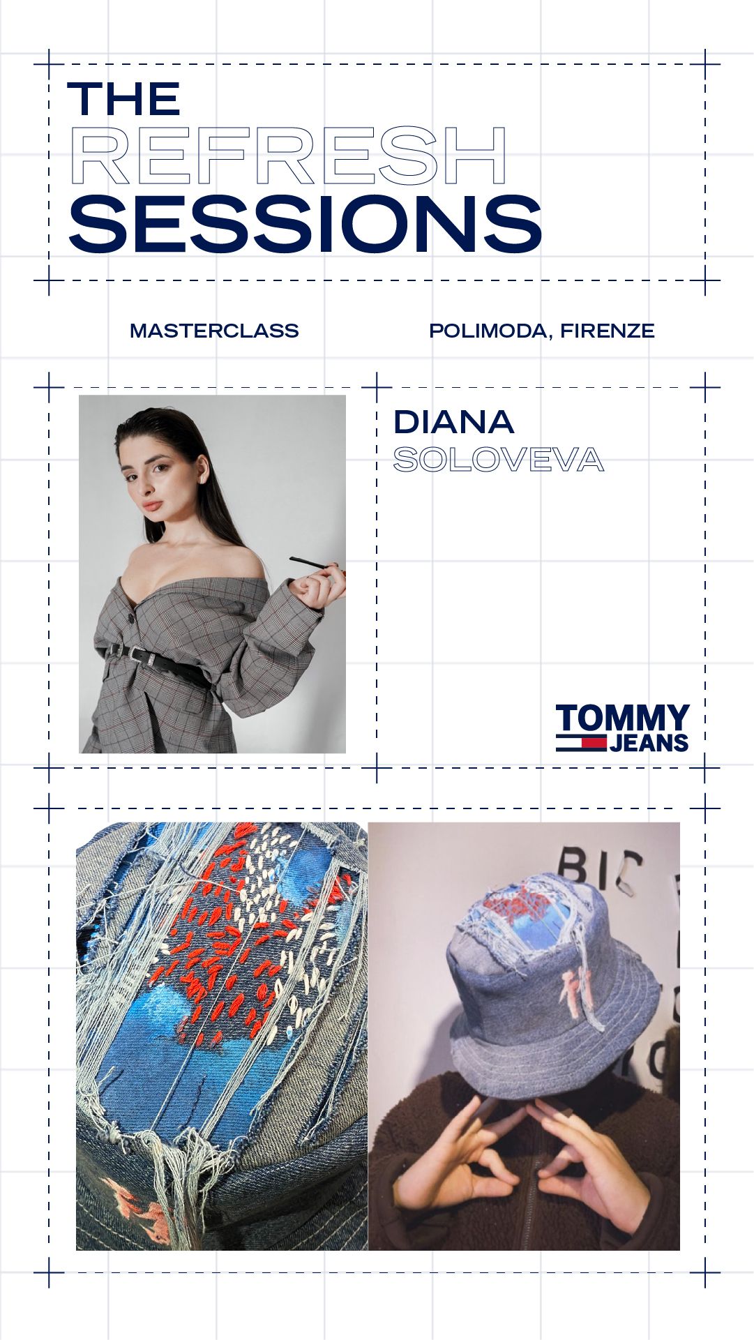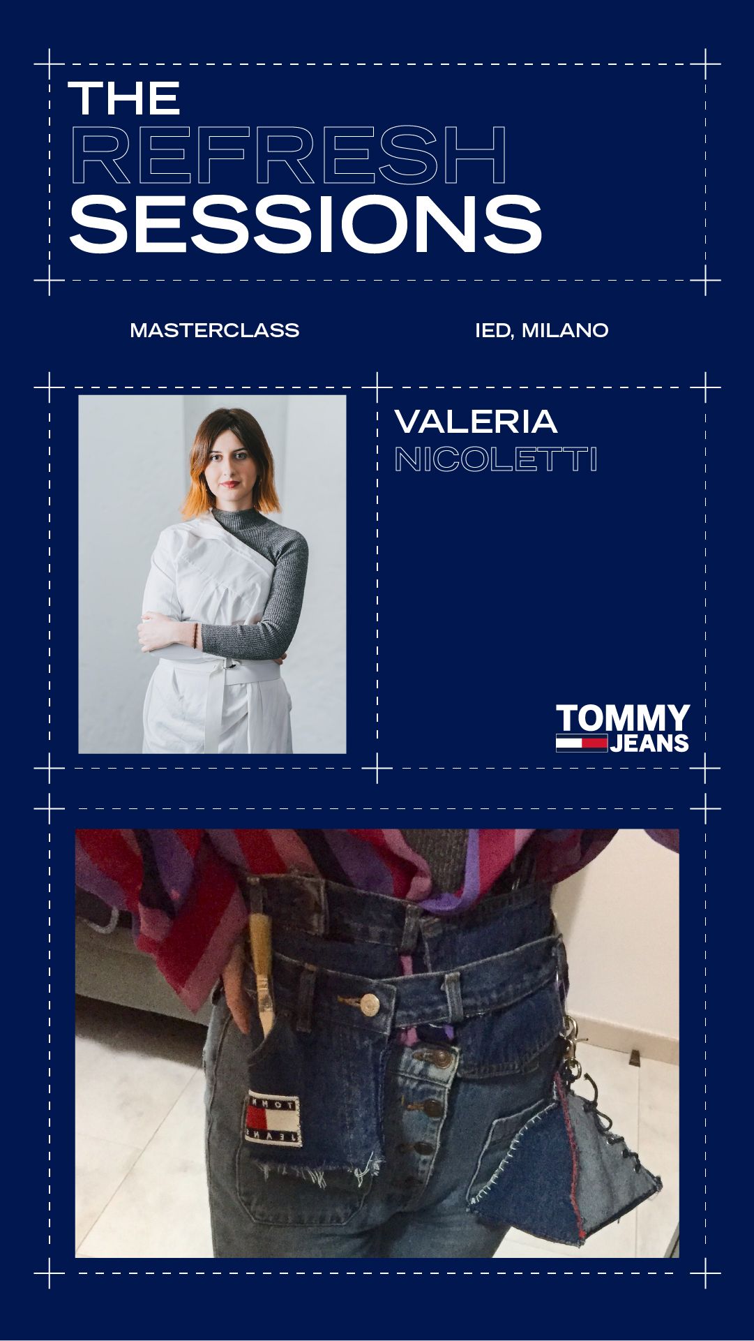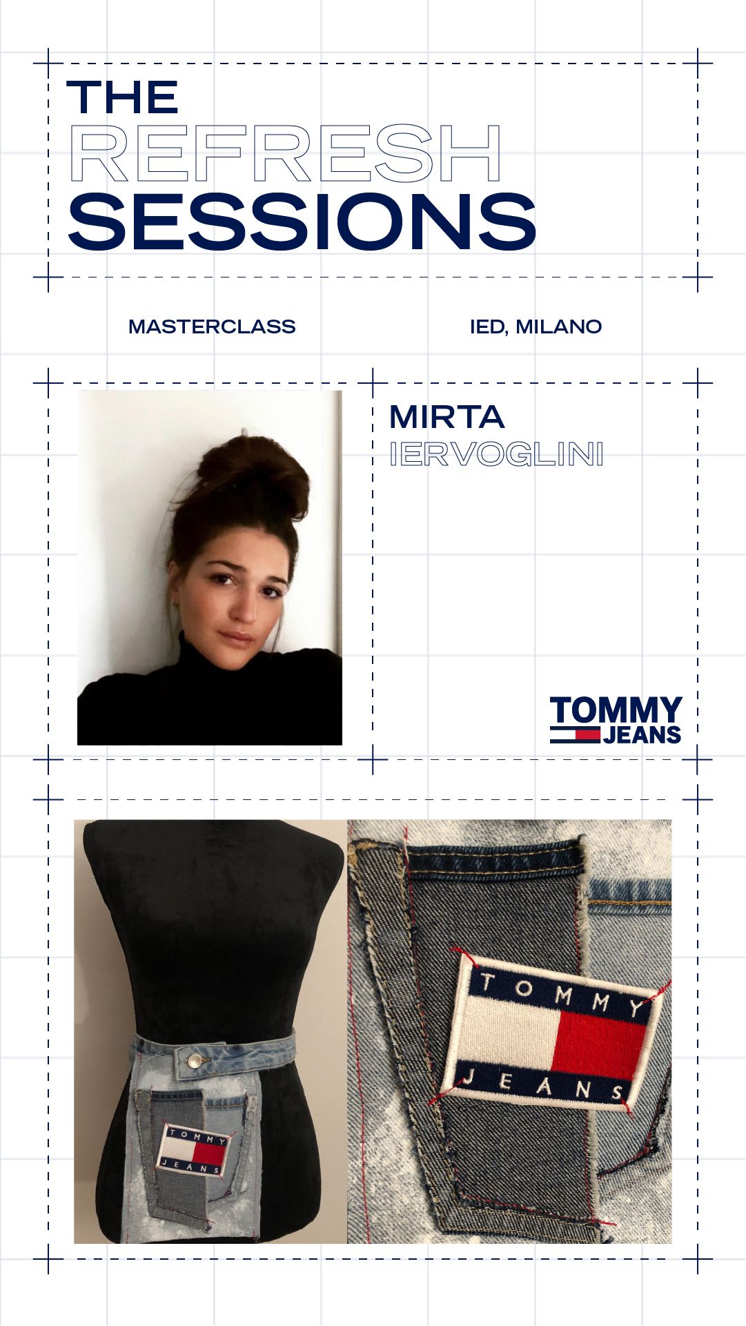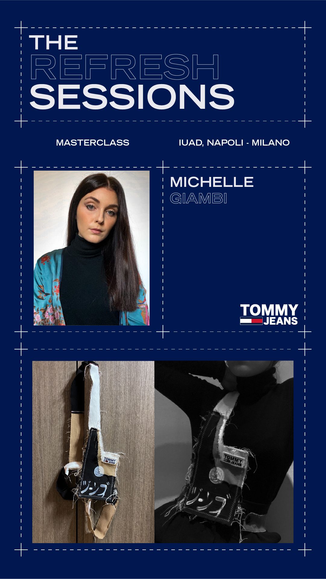 The Refresh Sessions is the digital hub created by Tommy Jeans and nss to give a voice to the new generation of Italian designers. The focus of the project was upcycling: through the digital hub, in fact, the fashion students of IED Milano, IED Torino, IUAD Napoli-Milano and Polimoda Firenze had the opportunity to explore the world of denim by transforming old garments into a new creation through a method of online teaching at a distance.