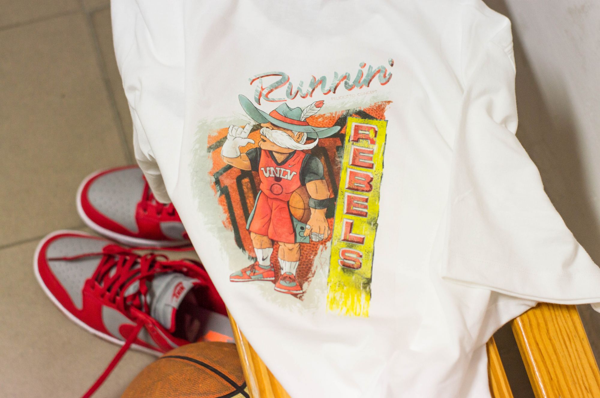 Among the most relevant silhouettes of the sneaker game, the Dunks are the protagonists of the special pack created by Feliciotto Taormina to celebrate the release of the Nike Dunk UNVL Low. In addition to the sneakers, the pack also features a Nike tee and cap, as well as a shopper and stickers with graphics created for the event that celebrates the bond between Dunk and the Runnin Rebels of the University of Nevada, Las Vegas.