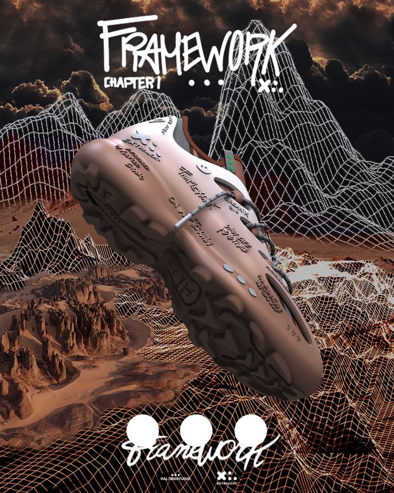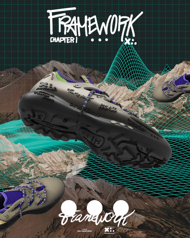 XL-FRAMEWORK is a creative platform that embodies the partnership between these two Italian excellences, with the primary objective of enhancing the brand's vision on a global scale and empowering a new sense of experimental creativity applied to footwear products. In the context of 'computer language', the word 'Framework' represents a platform that functions as an intermediate layer between an operating system and software. The development of the XL-FRAMEWORK concept will then be presented at Sole DXB, the legendary annual footwear, music, art and lifestyle festival in the Dubai Design District in Dubai, UAE. On this occasion, XL EXTRALIGHT® and RAL7000STUDIO will present the FRAME model, a hybrid running shoe made of XL EXTRALIGHT® OrganixTM 3. 0 - the new formula composed of 30% circular biological raw materials derived from the recovery of waste/by-products from agricultural or forestry activities or from the biodegradable fraction of urban and industrial waste (used cooking oil from fryers and canteens for example) - where lifestyle and trail run world blend together to share an innovative hyper- design, featuring bold shapes and an essential silhouette.
