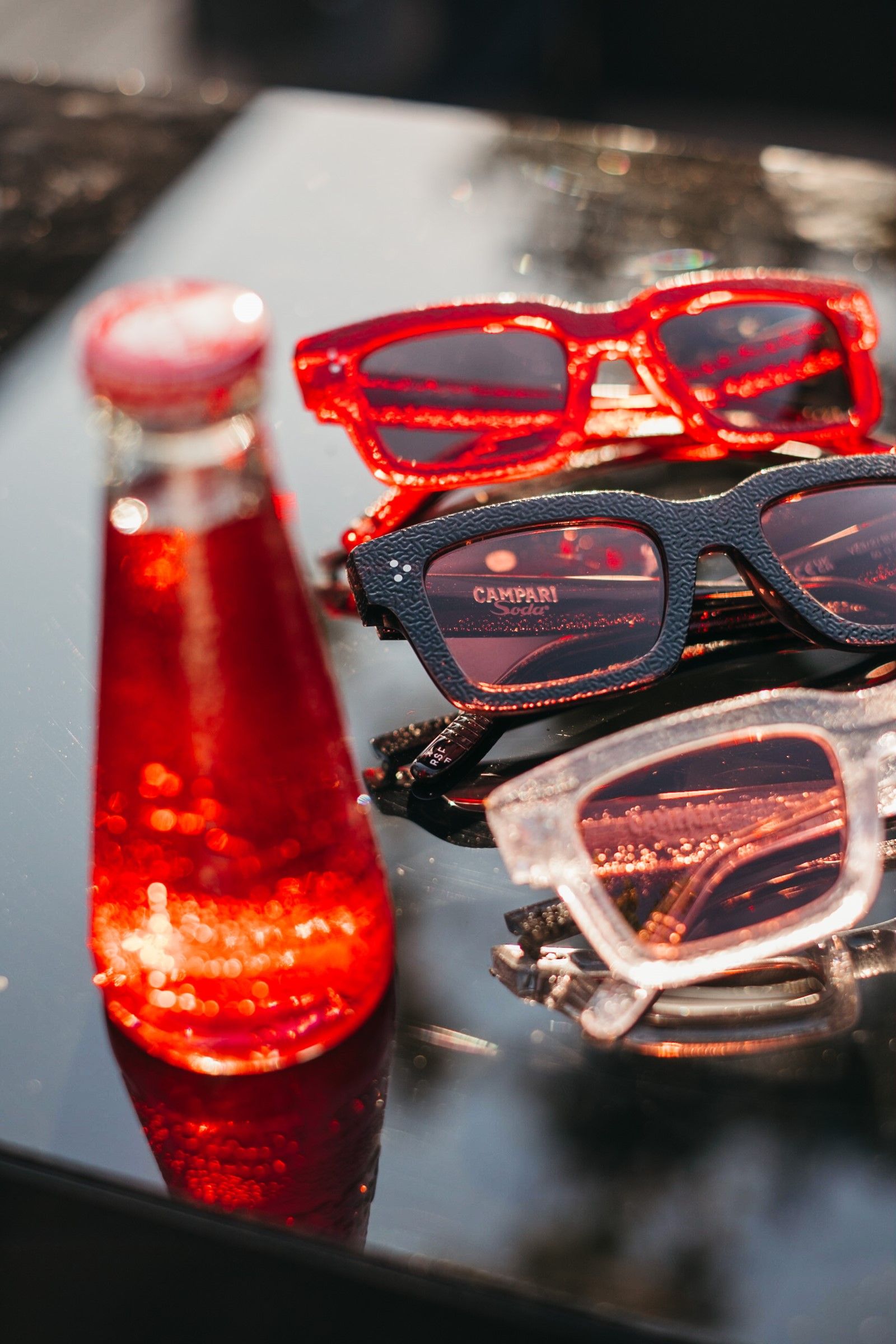 Campari Soda has been a symbol of authenticity for over 90 years, free from masks and social conventions, and this collaboration reflects the desire to emphasize the relationship between Campari Soda and the world of design, always looking to the future and new trends. The eyewear collection aims to offer a unique experience that combines the pleasure of aperitifs and fashion, with a touch of timeless elegance. For this reason, Ottomila, an eyewear brand founded in the Big Apple by Luca Cavallaro, was chosen as a partner in the new project; it is named after the fourteen mountains that exceed eight thousand meters above sea level - a symbol of excellence, boldness and new challenges, but above all a point of connection between the excellence of Italian craftsmanship and the modernity of New York style. The collaboration with Campari Soda represents a new challenge for Ottomila in the eyewear industry, combining its unique aesthetic with the authentic character of Campari Soda. «For as long as I can remember, I have been attracted to the design of the small bottle of Campari Soda», Cavallari told the press, «by its proportions in particular, its simplicity in shape, its transparency, its lack of a label, and by its iconic and functional texture. I tried to transport these elements within an 8000 eyeglass, using the Stinger model».