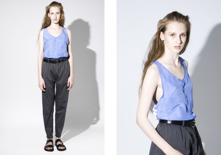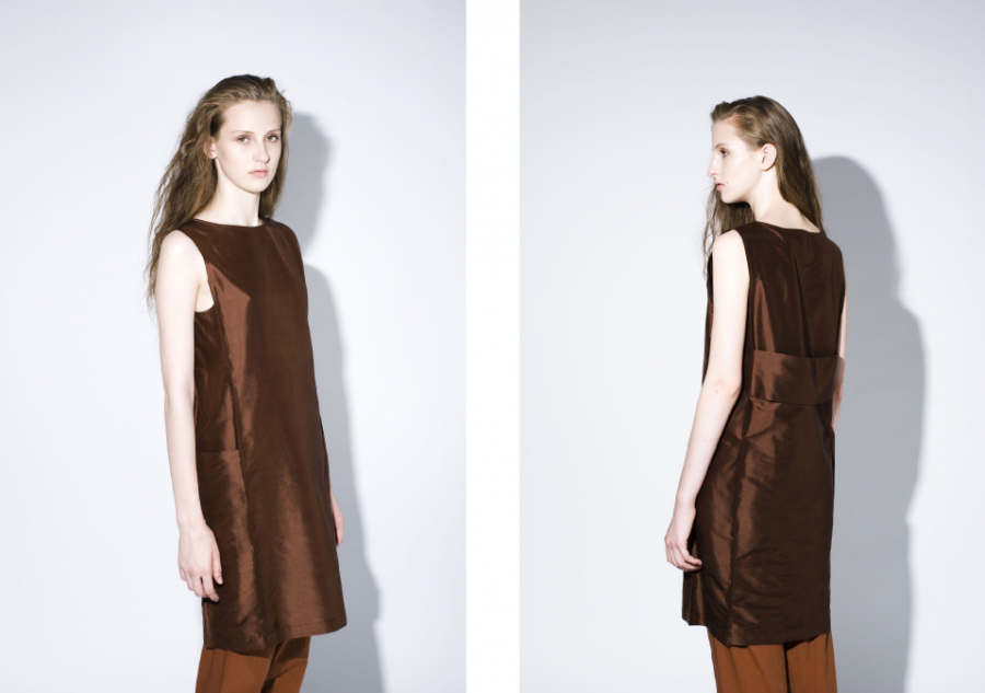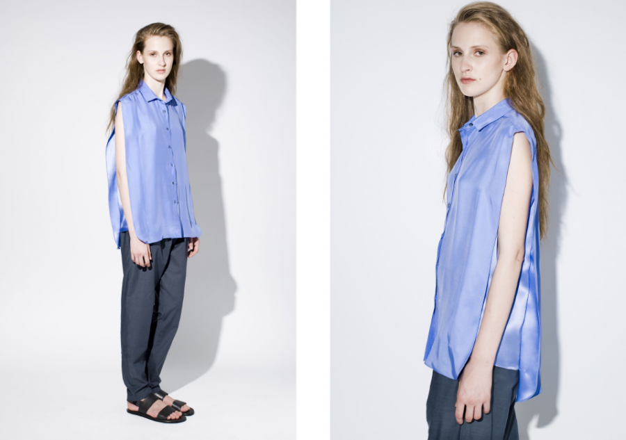 The collections tend to reach a point of abstraction, an extreme concept translated in pureness and absolute geometries that encompass the body. Getting rid of ornamentations, Lucio Vanotti fuses beauty and utility; what’s left is what really matters like the grain of the fabric and the seams that define the structure of each item.