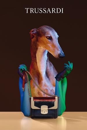 Bags and accessories of the season are featured along with the greyhound, the emblem of the Italian brand, in a series of surreal and ironic shots. Through the technique of cut out the American photographer, known for his talent in re-contextualize images to create new meanings and visual combinations, blends elegant animal's figure with human arms and legs.