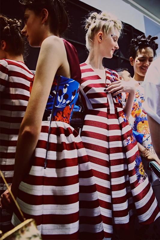 Antonio Marras and colors. An indissoluble union, the new collection for SS 15 winks at a Japanese pop art; silk lines and models without make up. The visual effect is extraordinary, but zooming we realize that nothing is left to chance. Each embroidery is calibrated in color contrast, the skill to combine different materials and shapes that come together in an all-encompassing impact. We crave everything has lines.