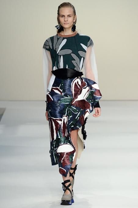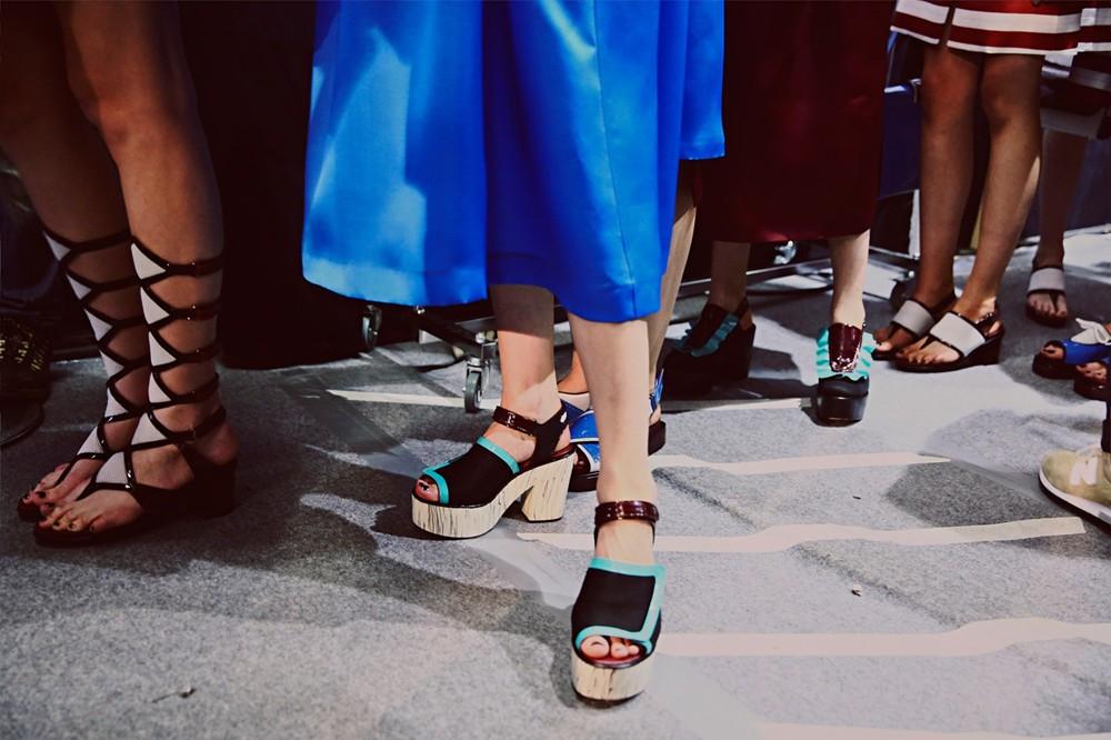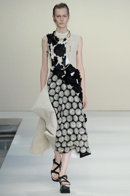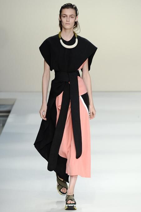 Marni and the concept of the modern geisha. Consuelo Castiglioni respects the style of the house and it evolves in order to project the future. As the models wear tradition with ultra flat toe cap, comfort never obvious. The color palette ranges from pure white to the more vibrant colors of the latest releases. A clever use of materials structure as the clothes architectures. Must have absolute skirts with belt band.