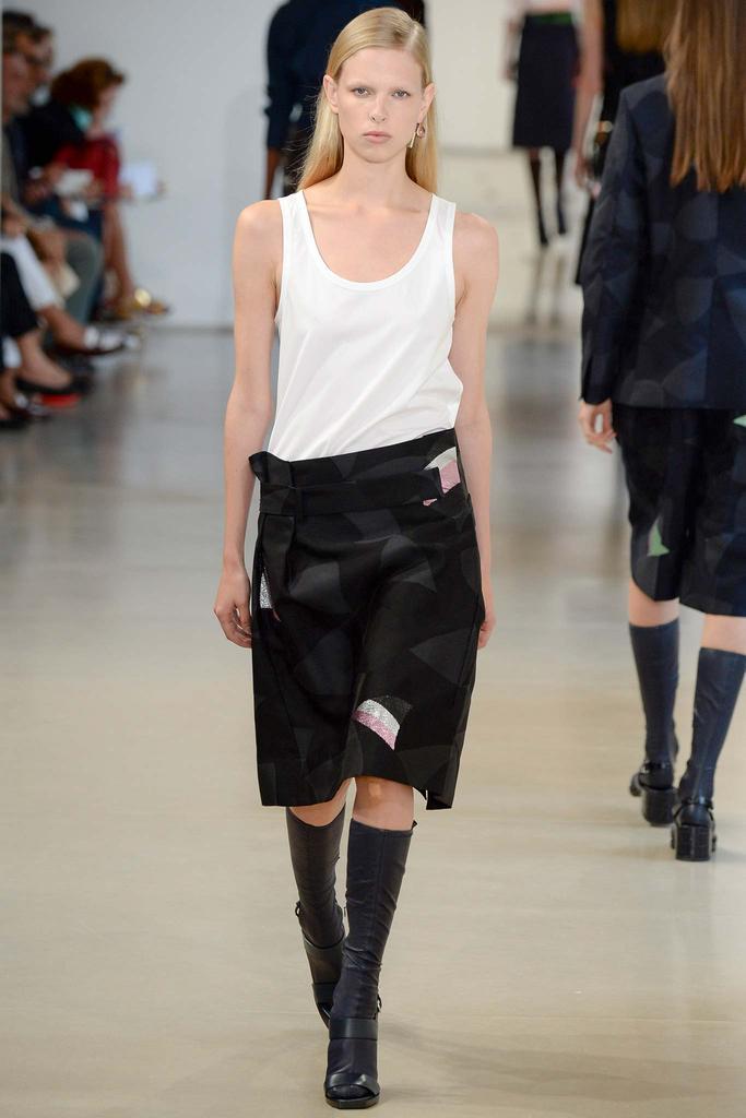 Jil Sander has centered on the issue of full pret a porter, masculine silhouette from unexpected slits. White, navy blue and burgundy are the prevalent colors. The inspiration permeates every minimal output, shirts covered with mesh vest and knee-length skirts. We want portfolio skirts, also in leather version. The movement finds unexpected points, futurism pret a porter.