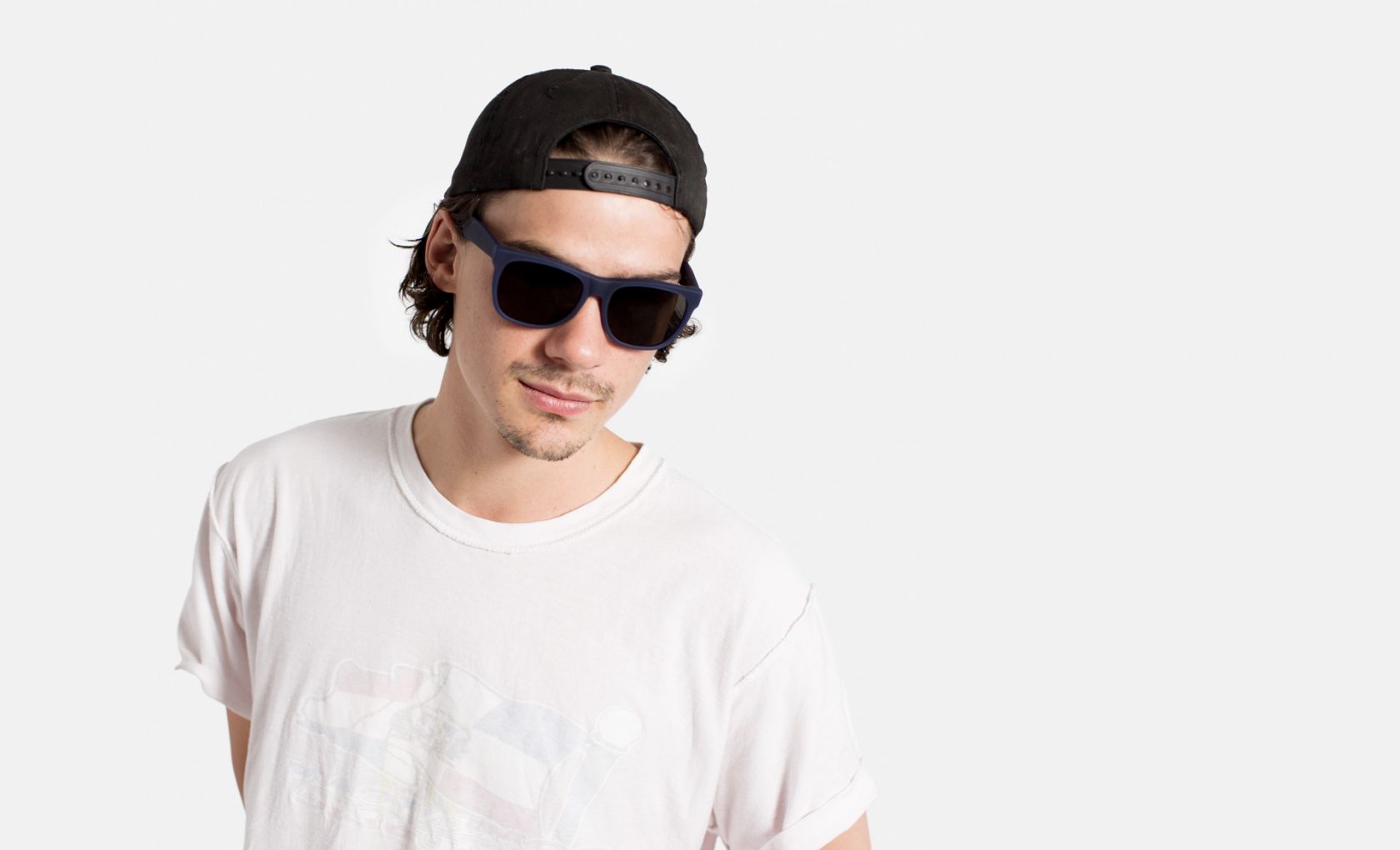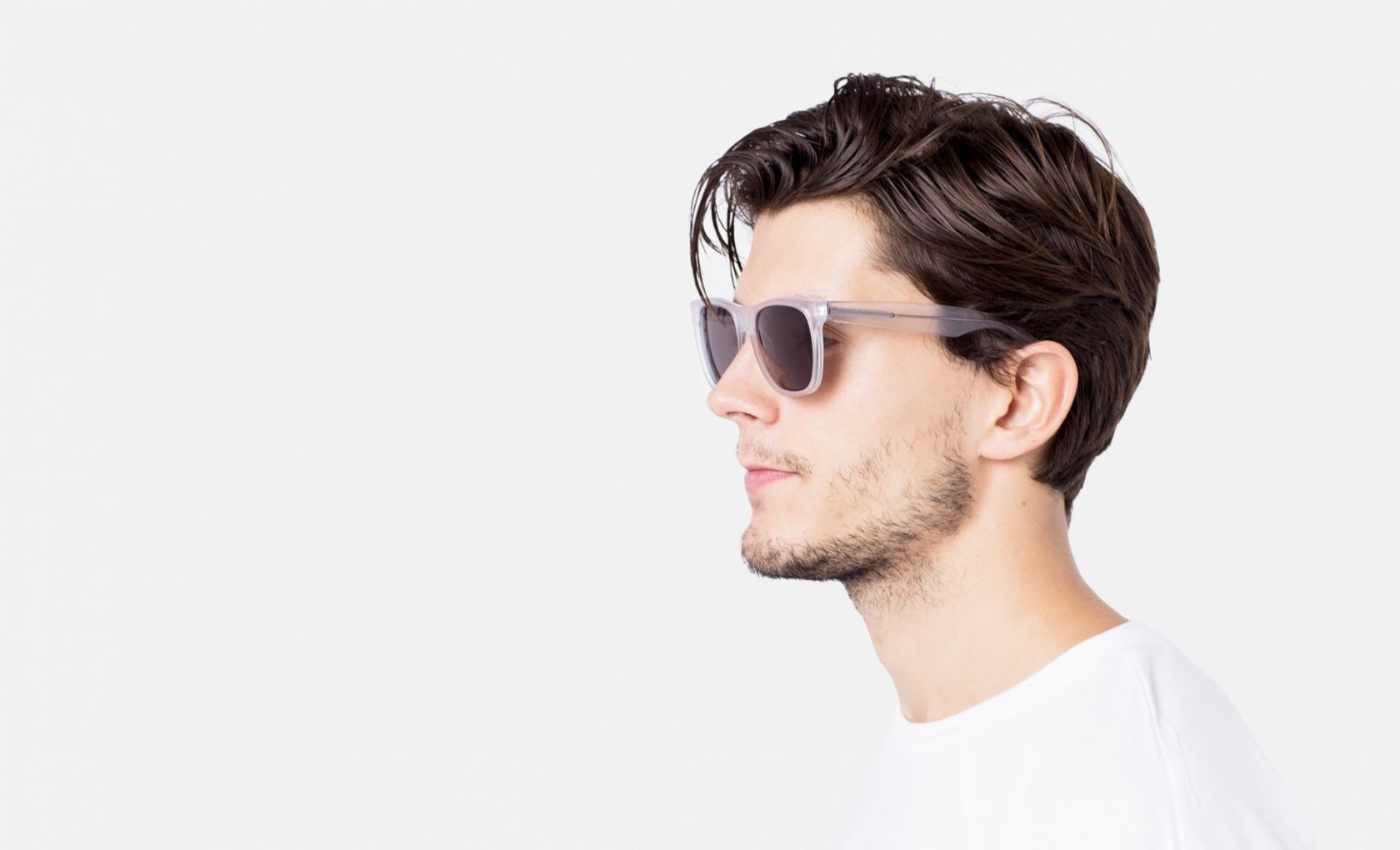 Inspired by Rains aesthetics, the Italian brand has created two models whose acetate structure is entirely covered with waterproof rubber. Available in the Blue Navy and Crystal versions, both frames present dark black lenses by Zeiss.