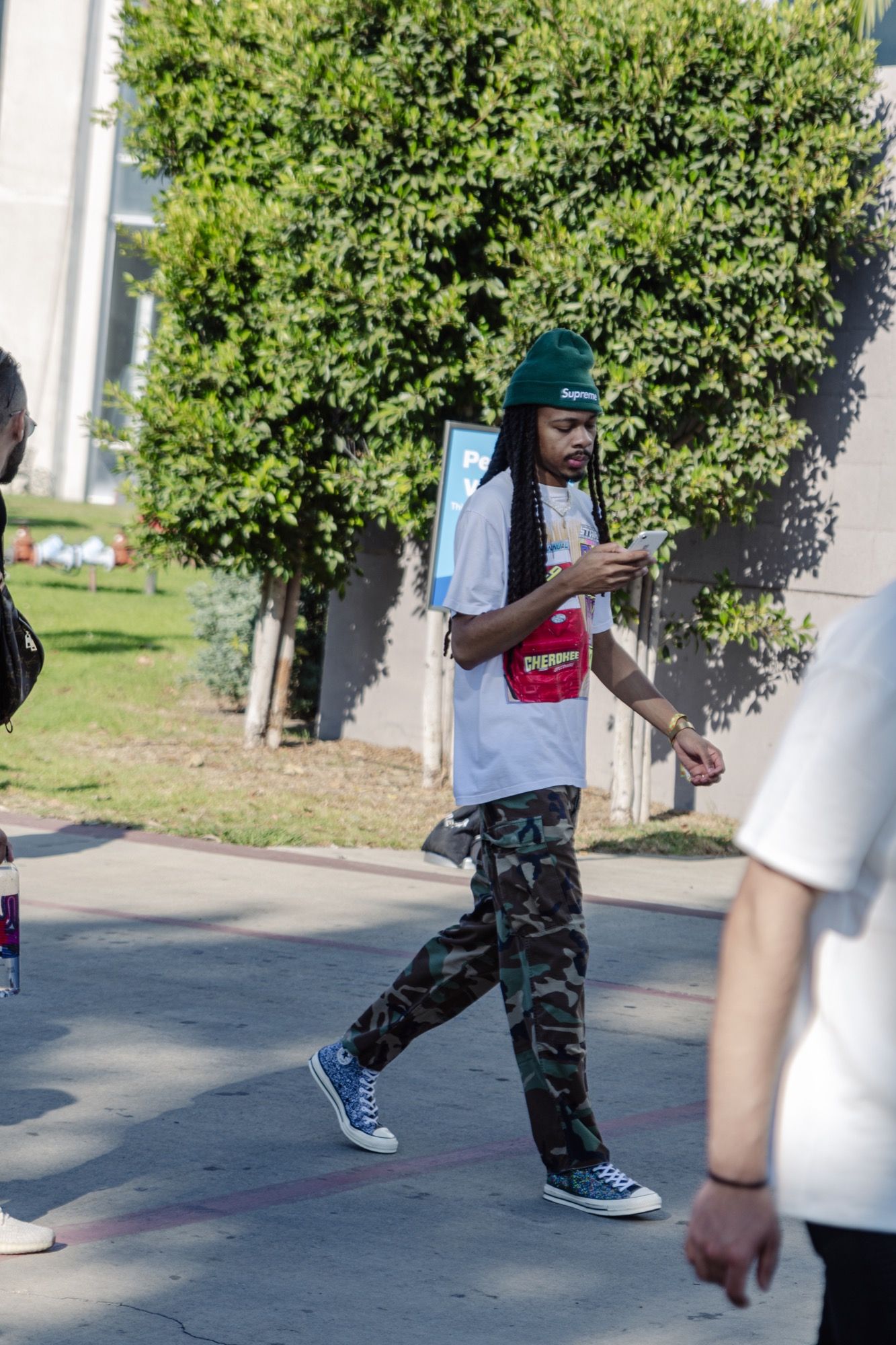 As always our lens was focused not only on the pop-up shops, the exclusive releases, like the collaborative tee by VLONE and Call of Duty or the atmos by Sean Wotherspoon, or the best-known attendees but above all on the best looks spotted in Long Beach. Between freshly dropped sneakers, Prada vests, Fendi logo shirts, ComplexCon did not let us down with a series of unique, over-the-top, colourful and unexpected looks.