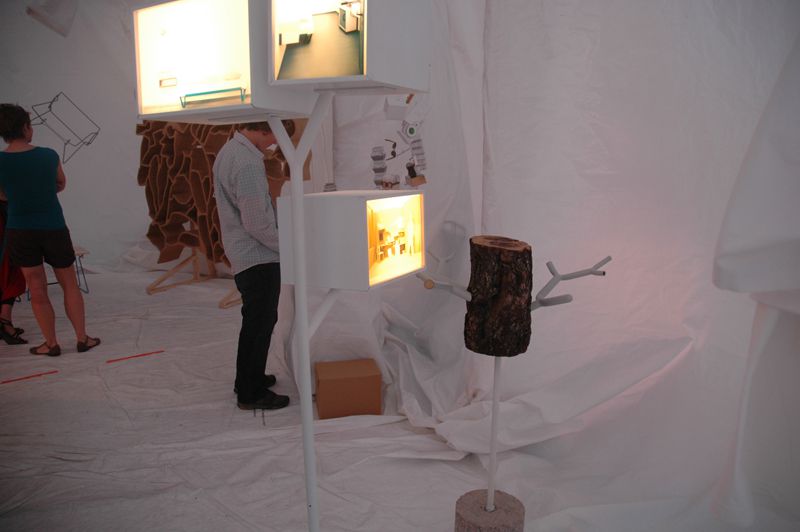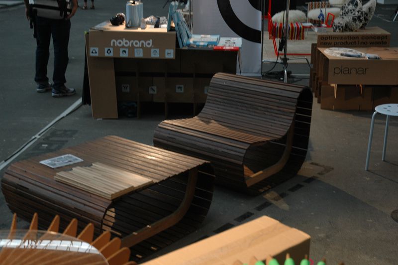 Gli espositori son per lo più tedeschi,danesi e svedesi, e il minimo comune denominatore di tutti i progetti, quello che subito risalta agli occhi, è l'uso del legno, nelle più svariate essenze e in abbinamento con i più svariati materiali. Tantissimi poi i progetti in lastre di acciaio e alluminio, sapientemente piegate e calandrate, un'esperienza di materiali nostri da sempre, e forse più vicini all'uomo; poca plastica, poco Corian, molta artigianalità, come giusto che sia per un salone di giovani proposte, dove c'è da ammirare la creatività e non le magie che il materiale dal costo esorbitante permette, ed allo stesso tempo vieta, come invece da anni accade a Milano. Naturalmente anche qui ci sono le eccezioni, come stand di Designer più affermati con prodotti finiti e sapientemente realizzati, ma il contesto è diverso, tra gli stand si respira un'aria rilassata, si vendono ragazzi che si divertono consapevoli di vivere in un contesto privilegiato, e alla fine del percorso, una consolle da dj lancia, come da tradizione tedesca, musiche tecno che incorniciano l'esperienza del DMY . In città, sopratutto nei quartieri giovani e creativi della "ex Berlino Est", una ben fatta guida indica i vari studi/laboratori segnalati per il fuori salone, il DMY Extended, ed anche qui la sorpresa e di quelle che non ti aspetti, gli studi di architetti e designer Tedeschi, non sono nascosti ai piani alti degli edifici o comunque in posti poco visibili, ma sono fronte strada, come fossero i negozi, cammini per le strade e al fianco della normale boutique di moda trovi con tanto di vetrine gli studi, in una vetrina i progetti in vendita, nell'altra il tavolo da lavoro con computer, schizzi, matite, lampade e i progettisti all'opera.