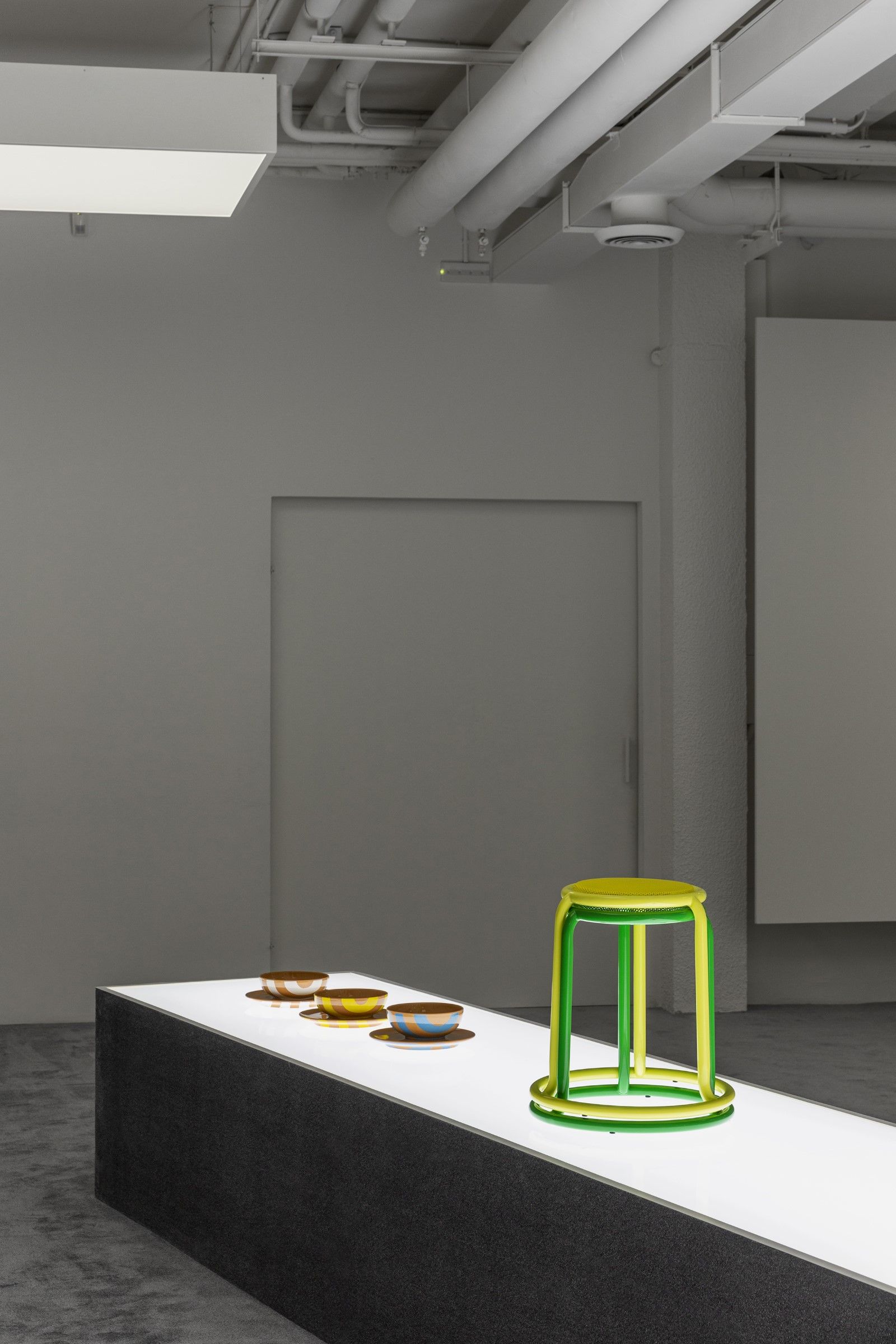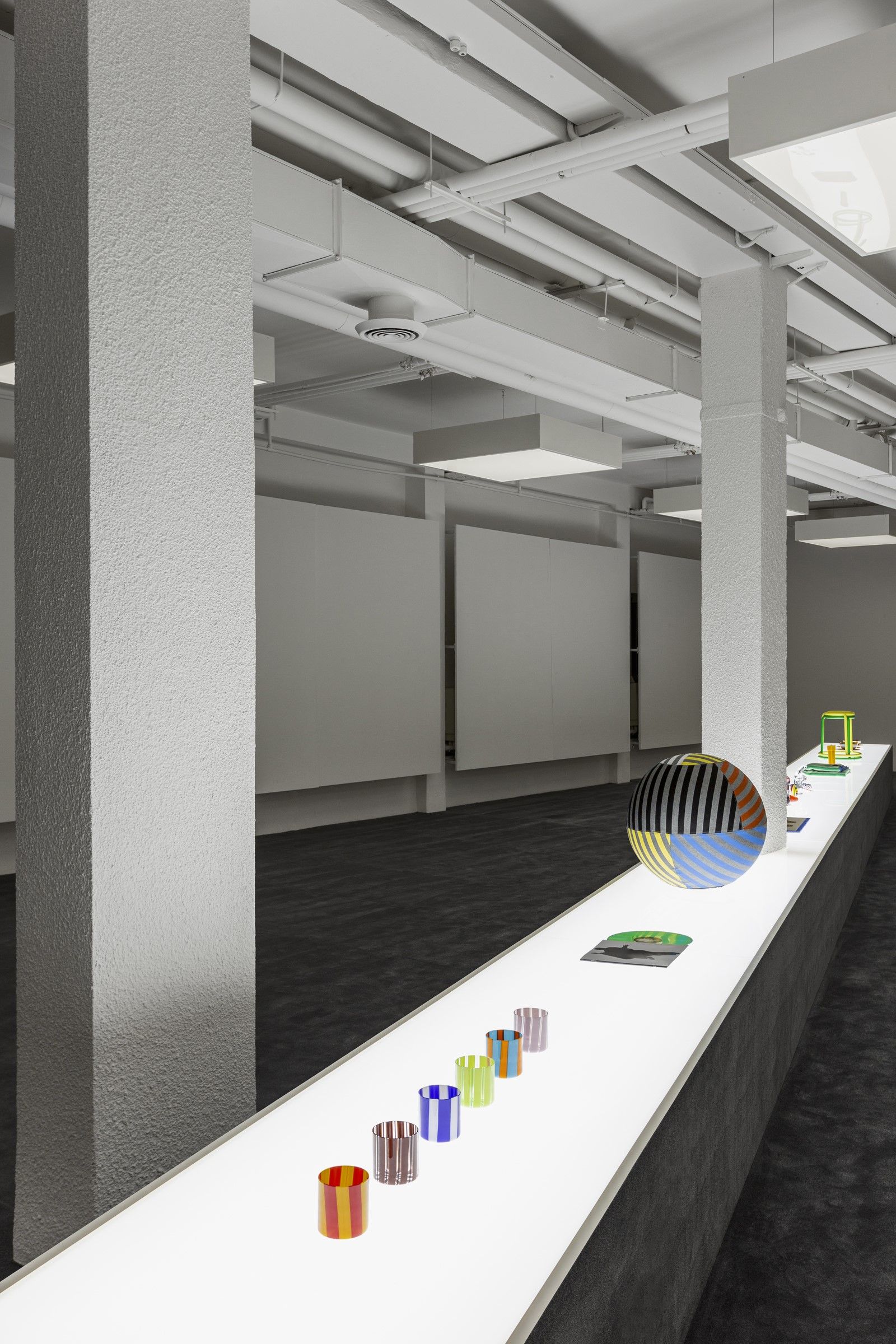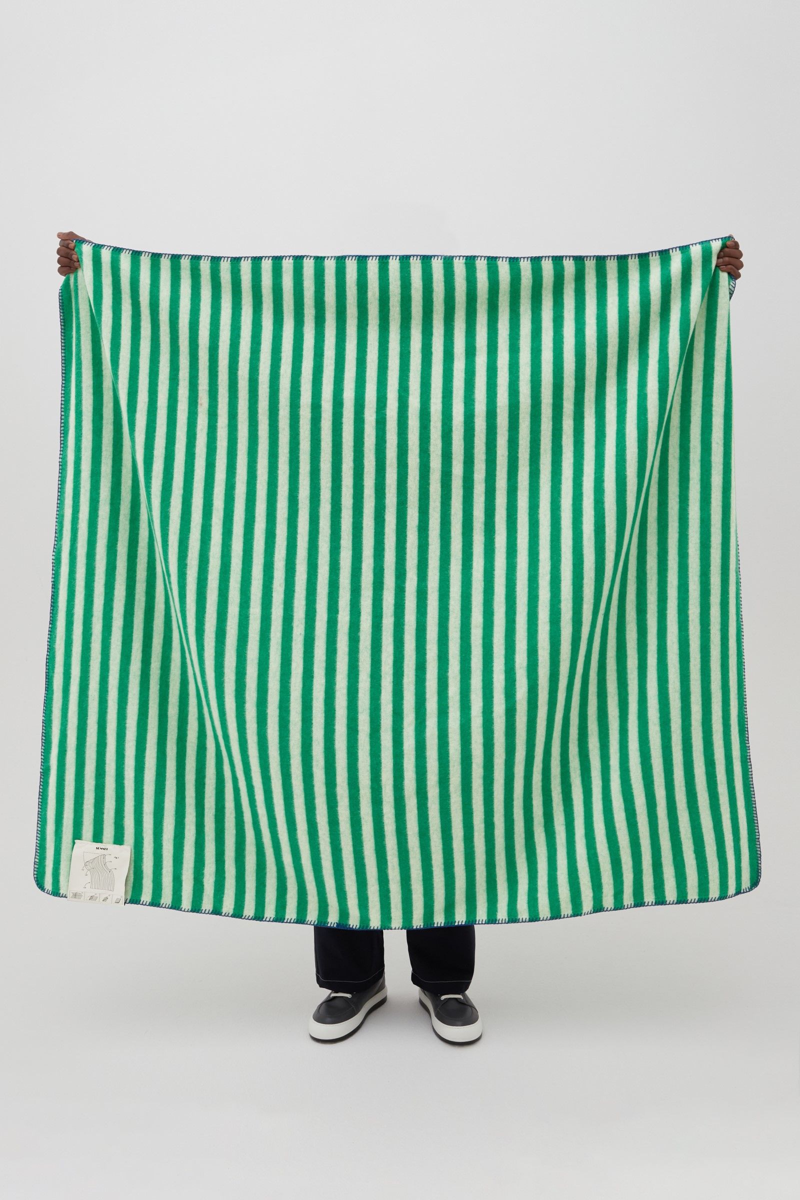 Fra gli highlight della collezione ci sono i bicchieri di Murano in nuovi colori e il primo set di piatti del marchio. Oltre al tableware, un altro pezzo forte è l’immancabile coperta di lana mentre, sempre inclusi nella line-up, si trovano uno zerbino bianco decorato dall’impronta delle Dreamy Snekaer del brand, una serie di suppellettili decorative dalla forma inequivocabile che, secondo il brand e anche secondo noi, diventeranno un efficace conversation starter durante qualunque cena tra amici. Sempre parlando di cene tra amici, con la nuova line-up il brand ha anche pensato a un sottofondo musicale trasformando in vinile la colonna sonora dell’ultimo show FW21 e aggiungendo anche tre bonus track. Tra gli altri oggetti, invece, c’è una versione della classica palla da ginnastica ricoperta in denim e ribattezzata Almost Swiss Ball mentre nella line-up c’è anche una collaborazione con lo studio di design americano Matter Made che include due sgabelli Champ con i tipici colori di Sunnei.