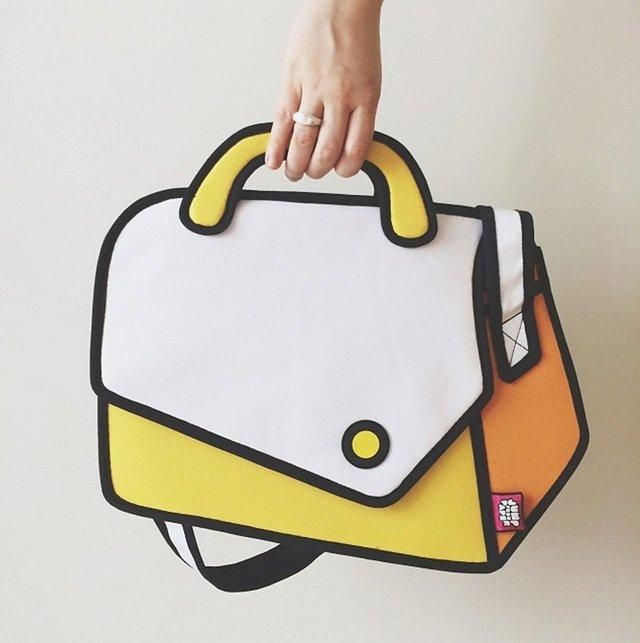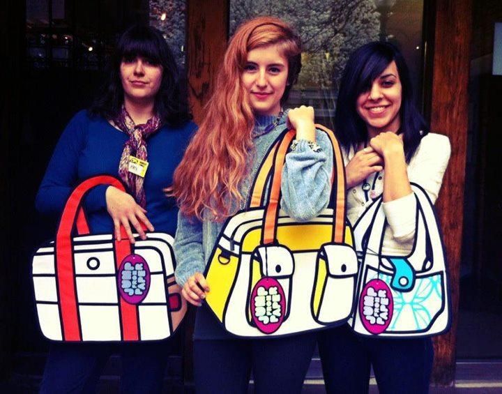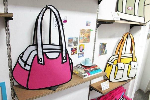 Al primo impatto si mette a fuoco un paio di volte prima di capire che sono borse vere e non un cartone animato!