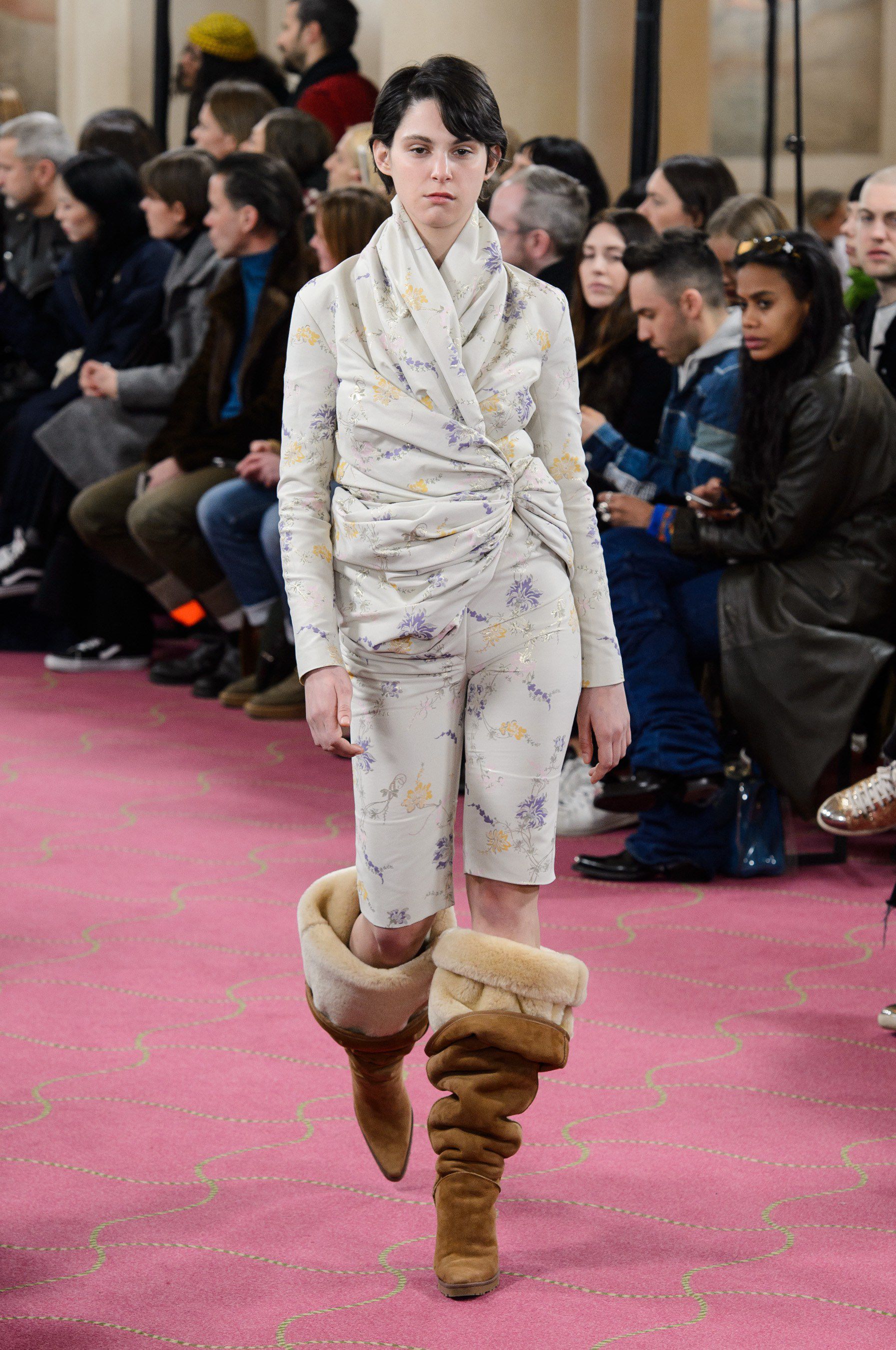 Torna a completare i look la collaborazione con UGG, con gli stivali enormi alti fino alla coscia che hanno debuttato allo show maschile a gennaio.