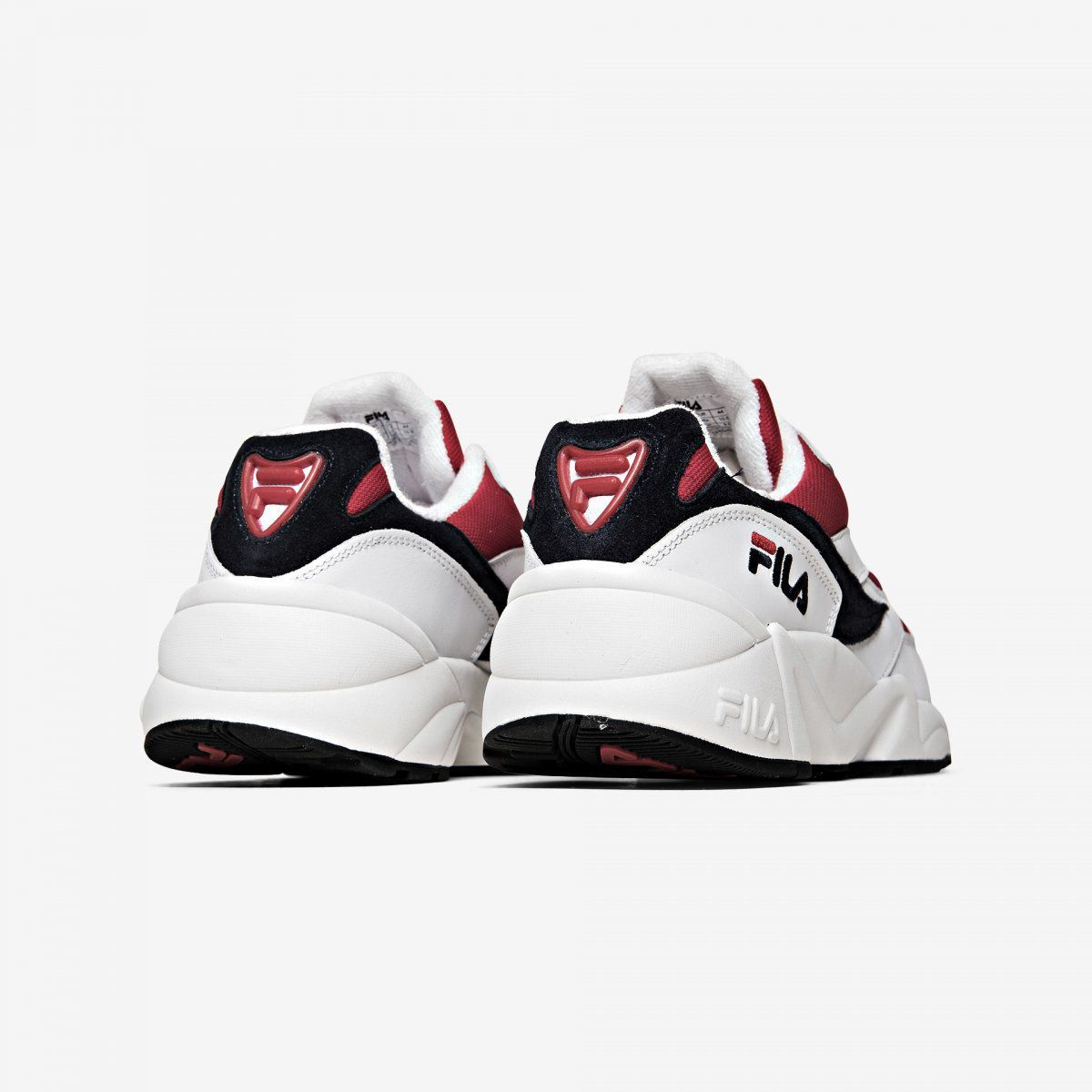 Le altre caratteristiche? La tomaia è stata costruita utilizzando tre diversi materiali: mesh, suede e pelle bianca che incrociandosi formano le cosiddette “zanne della serpe” sulla toebox che danno il nome alla scarpa. L’Intersuola in schiuma è bianca e più robusta rispetto al normale mentre, la Suola è nera; mentre sul tallone, sull'intersuola laterali e sulla linguetta spunta il marchio Fila.