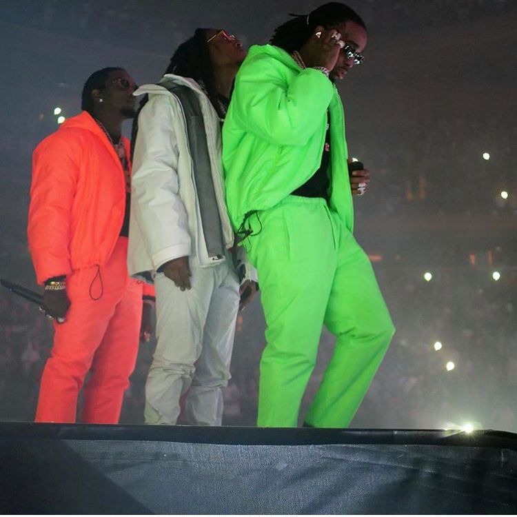 Non possiamo dimenticarci poi dei Migos, che lo scorso mese si sono presentati sul palco ognuno indossando una colorazione diversa, arancione, verde e il classico bianco. Senza dubbio questa è stata una mossa geniale da parte di Prada, e aspettatevi di vedere in giro e su Instagram sempre più capi della linea, in attesa dell'uscita della collezione Prada Linea Rossa.