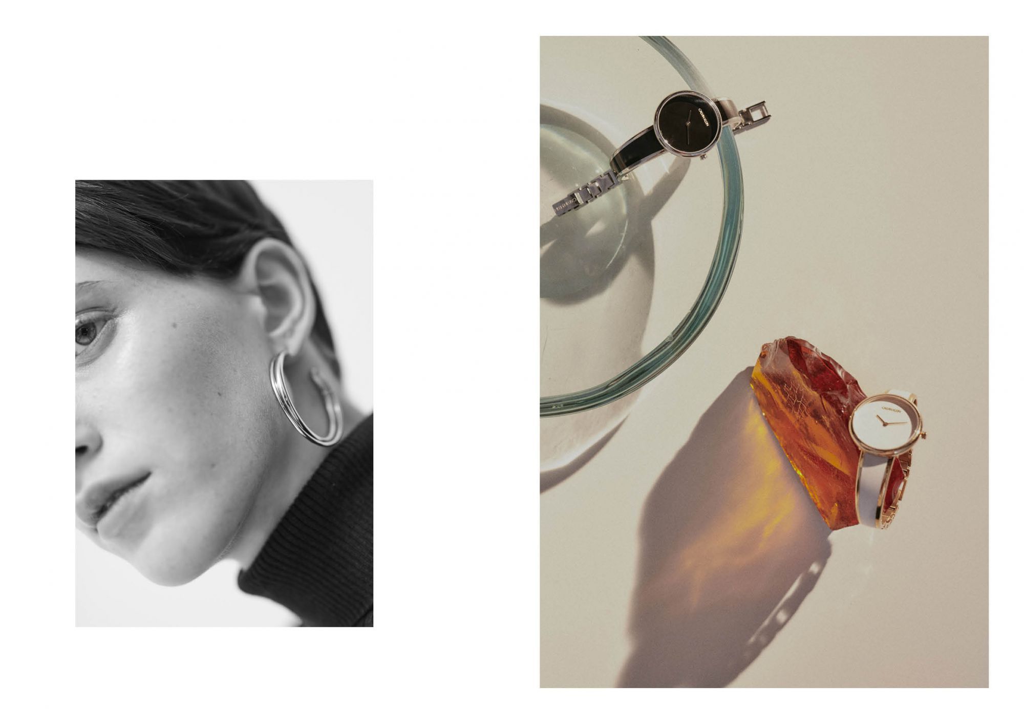 La collezione Jewelry è attraversata da uno spirito vintage, retro, ben visibile soprattutto negli orologi, creazioni classiche e senza tempo reinterpretate in chiave moderna grazie a materiali sofisticasti e raffinati. Sono i colori, ispirati alle ultime passerelle di CK, a giocare il ruolo più importante e a fare la differenza, specialmente nei dettagli.