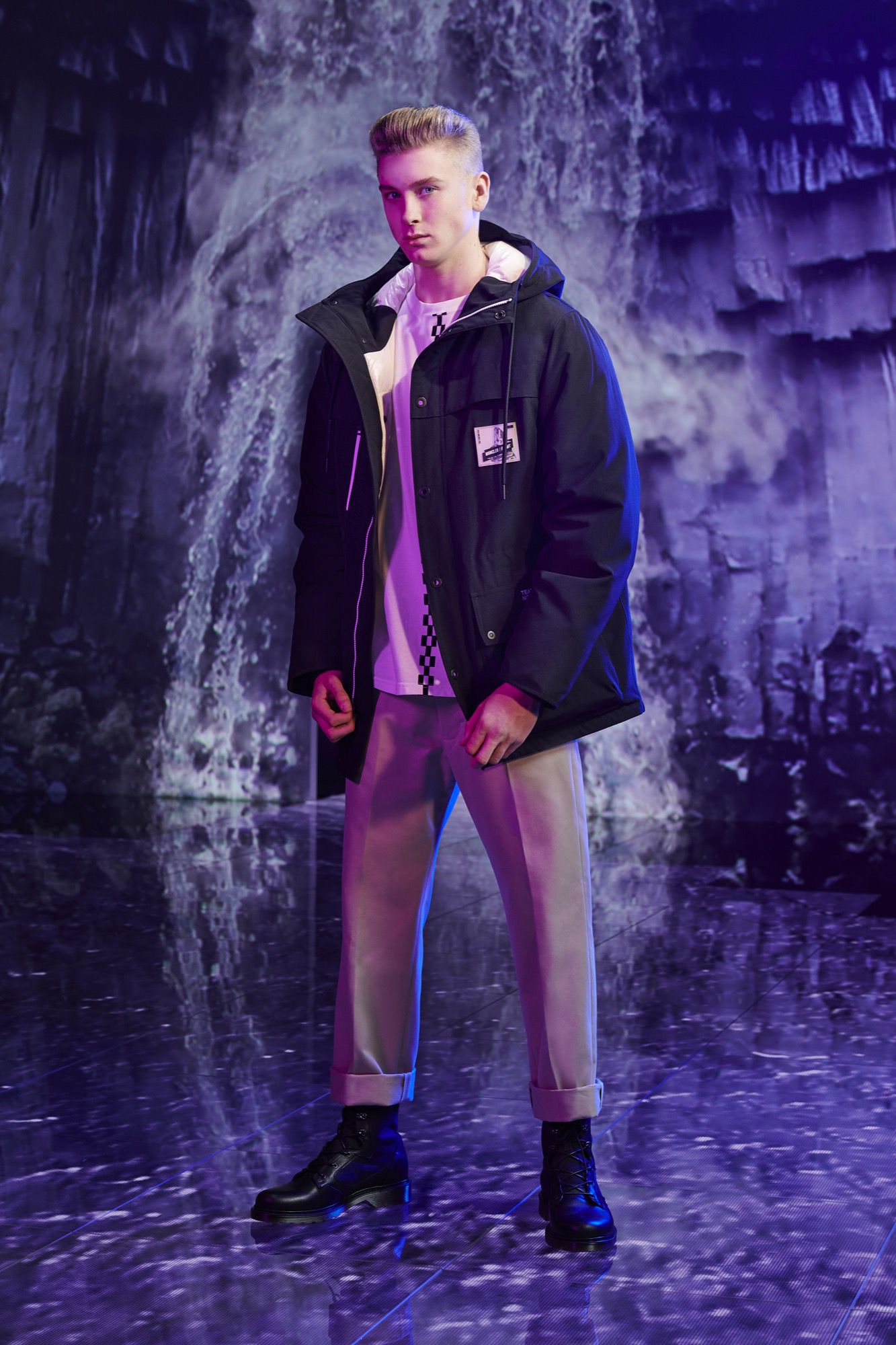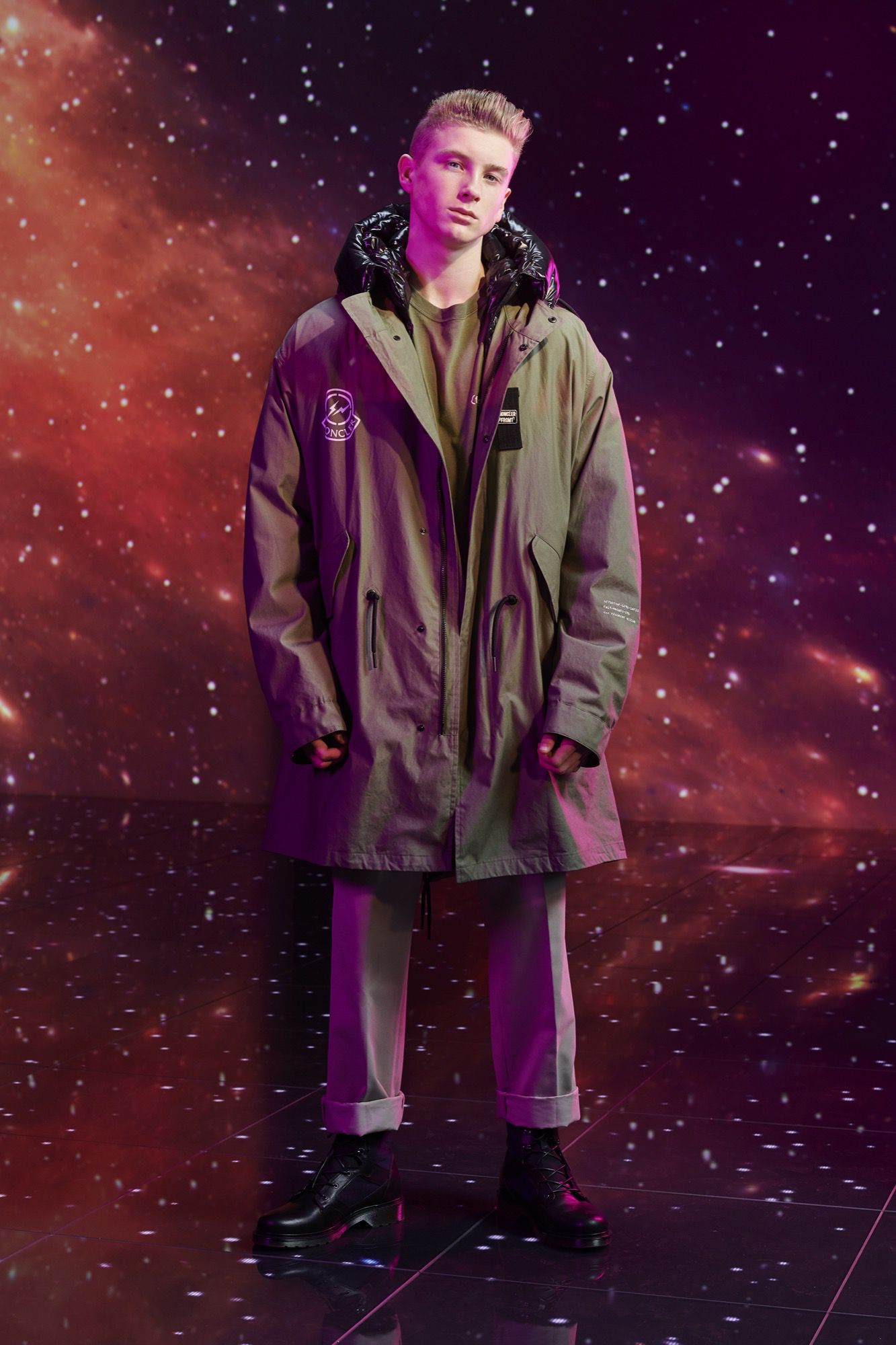I riferimenti militari trovano come silhouette di riferimento quella del parka e del bomber, arricchiti con dettagli in nylon e contrasti di blocchi di colore. Proprio la grande attenzione al dettaglio valorizza il maniacale approccio al design di Fujiwara e la costruzione dei capi.