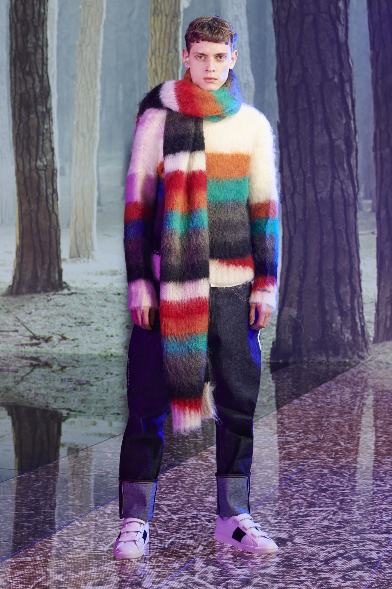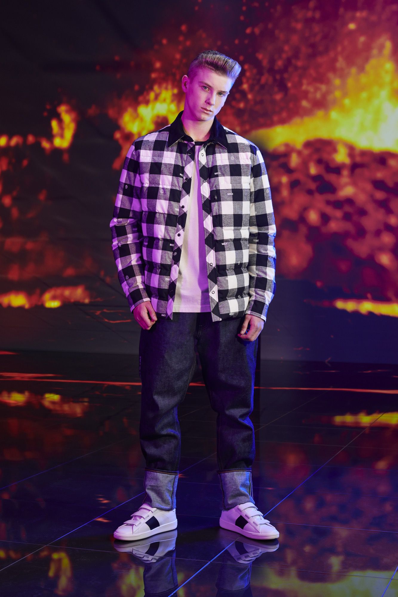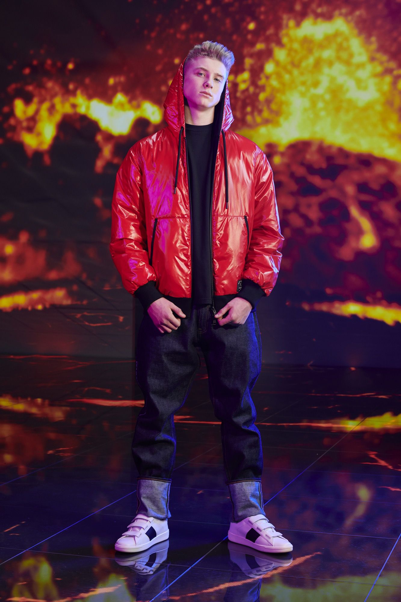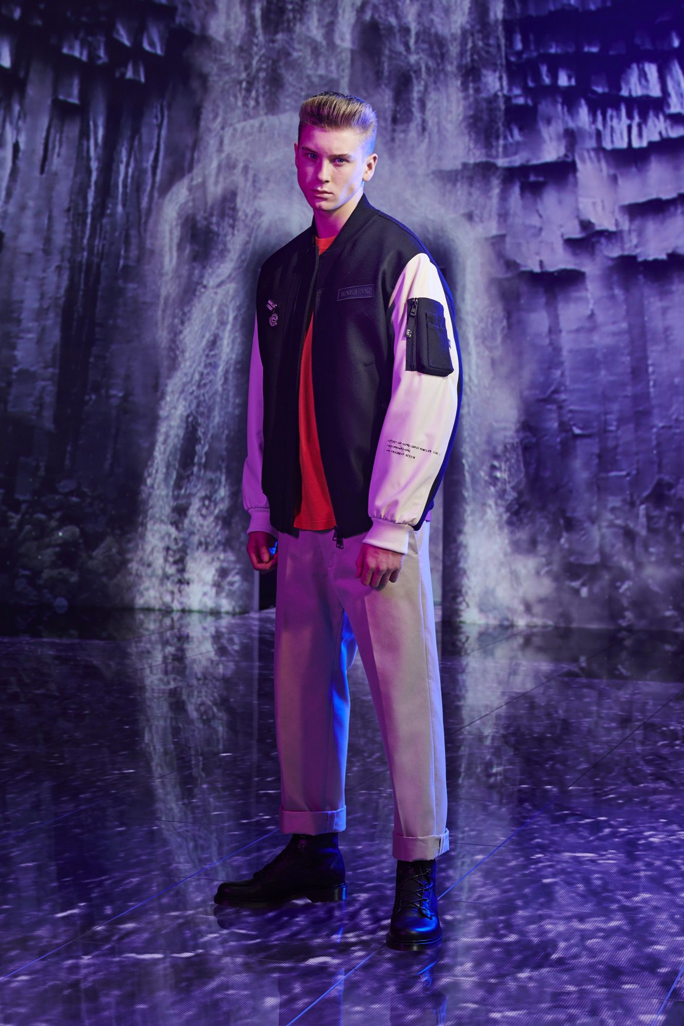 I mondi dal quale attinge Fujiwara sono vari e contrastanti, le scritte e gli slogan oversize sui piumini convivono con riferimenti all’aviazione militare e ad omaggi alla cultura americana, ma anche al look cool-britannia dei Mod e al mondo dei Pokémon, presente in una stampa all-over su duvet e felpe.
