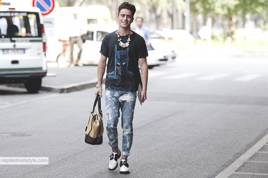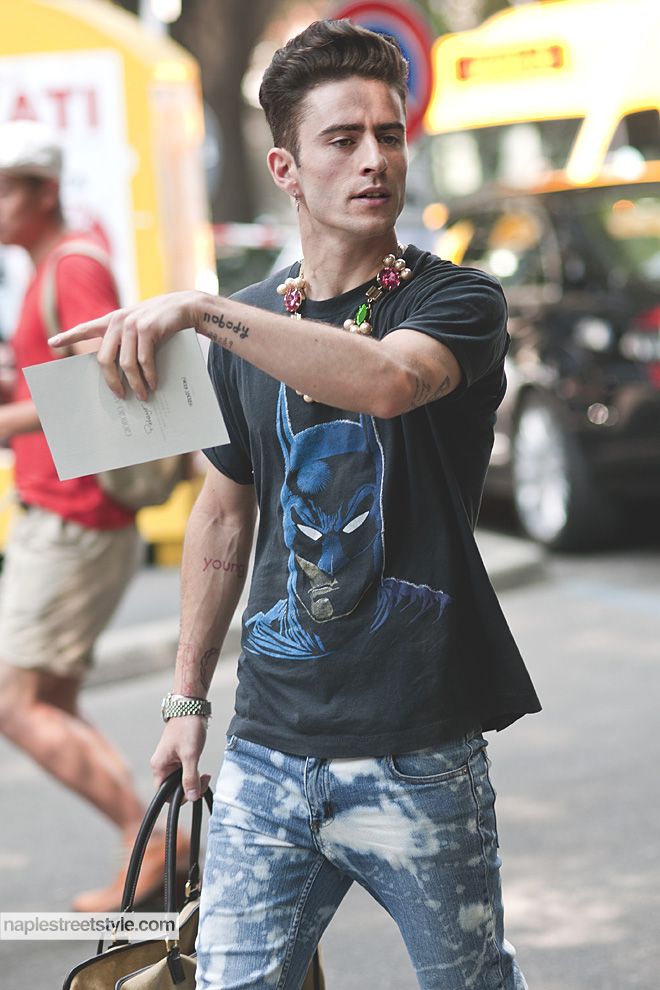 Lo start-up è con Dsquared alle ore 9.30 dove i designers in questione non si smentiscono mai. Immancabili per il giorno innumerevoli tocchi di colore resi neutri e quasi armonici dal tipico denim slavato. Per la sera ecco spuntare un tocco di aggressività. Un uomo sicuro di se, che piace e che sa di piacere attirando l'attenzione con un look che sicuramente non passa inosservato. Inserti in pelle, stampe bicolore sapientemente miscelate a pantaloni total black e dettagli rosso fuoco.