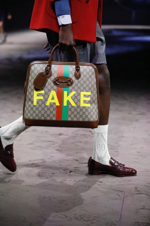 La borsa "NOT FAKE" di Gucci Avvistata allo show della collezione Uomo FW20