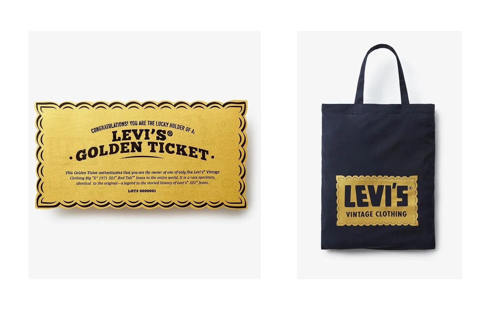 Inoltre, in occasione del 501 Day, Levi's offre alcune paia di jeans 501 in edizione limitata dotate di una speciale Red Tabs con la "E" grande. Tutte le etichette saranno avvolte in un foglio d'oro, in modo che solo dopo l'acquisto si possa scoprire se i propri 501 avranno la "e" piccola o grande.