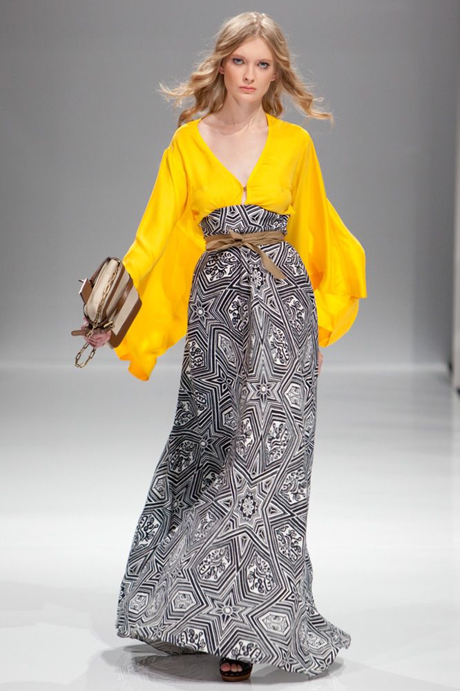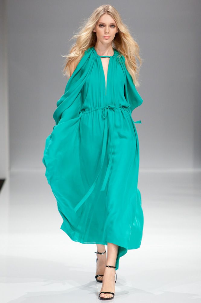 Alexander Terekhov is the emerging name of made in Russia fashion. He studies at Moscow Institute of Fashion Design and cuts hi teeth working for Yves Saint Laurent in Paris. Some years after he devotes to his own brand and runs the project with Rusmoda company. He makes himself known for the classic and iper feminine style of his creations. The summer collection follows the same philosophy. The lines are fluid, the dresses and the skirts long, almost for a goddess, adapt for strong, joyful, fashionable and glamour women, who attend exclusive shores. The colours are vivid, bright, turquoise, orange, black and white prints overpower all the others.
