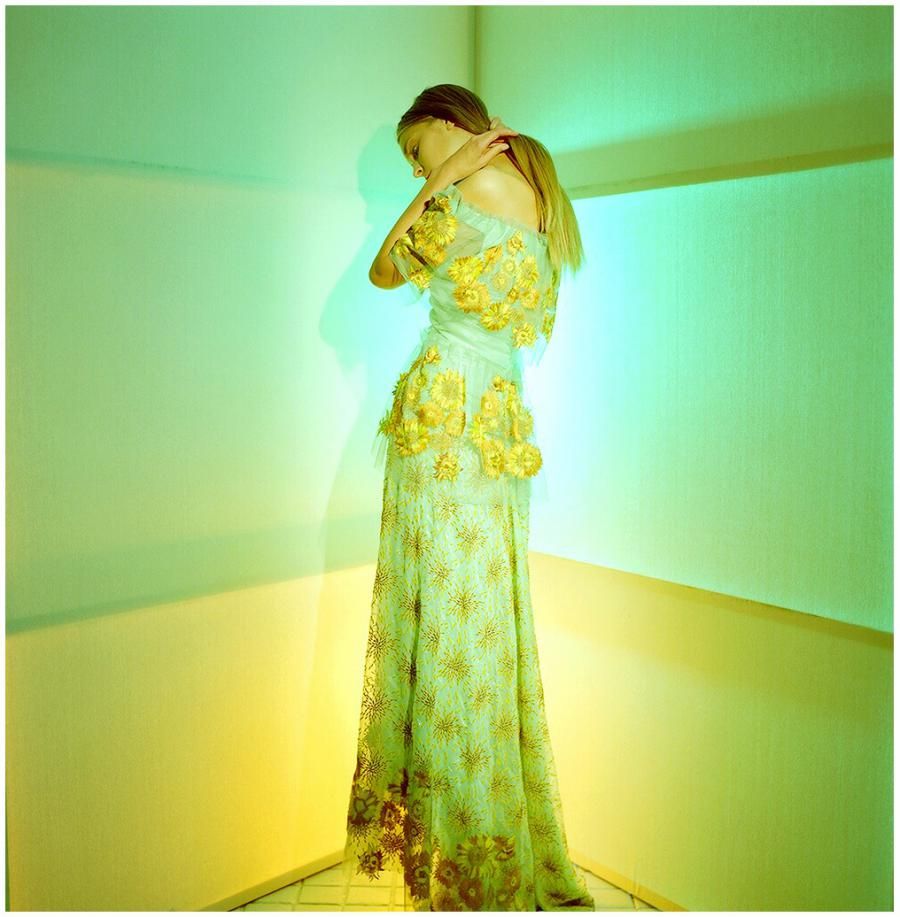 L'alba e il tramonto, le spighe di grano mosse dal vento, l'arcobaleno dopo la tempesta; la luce folgorante -quasi artificiale - che abbaglia e che illumina. E così anche la luce al neon sui candidi volti delle modelle fotografate da Autumn De Wilde per Rodarte, immortalate in acide sfumature adorne di pastorali riferimenti artistici: i girasoli di Van Gogh, la placida bellezza delle manifestazioni della natura.