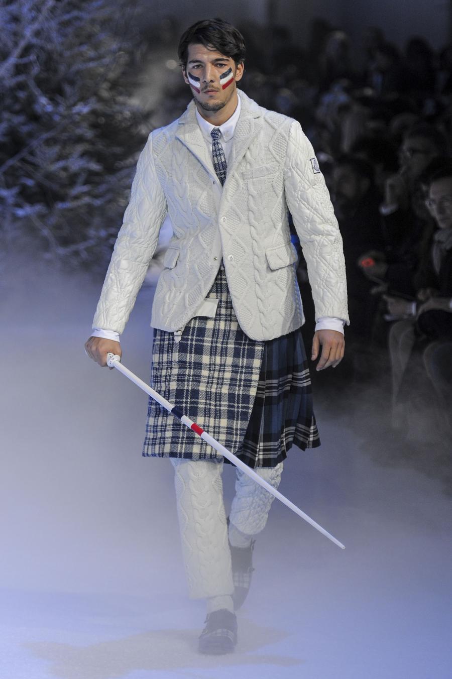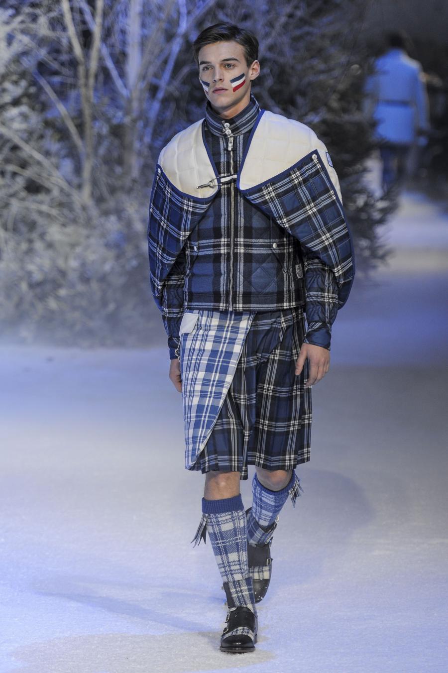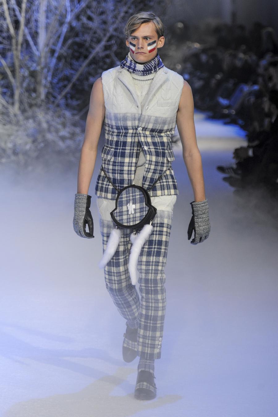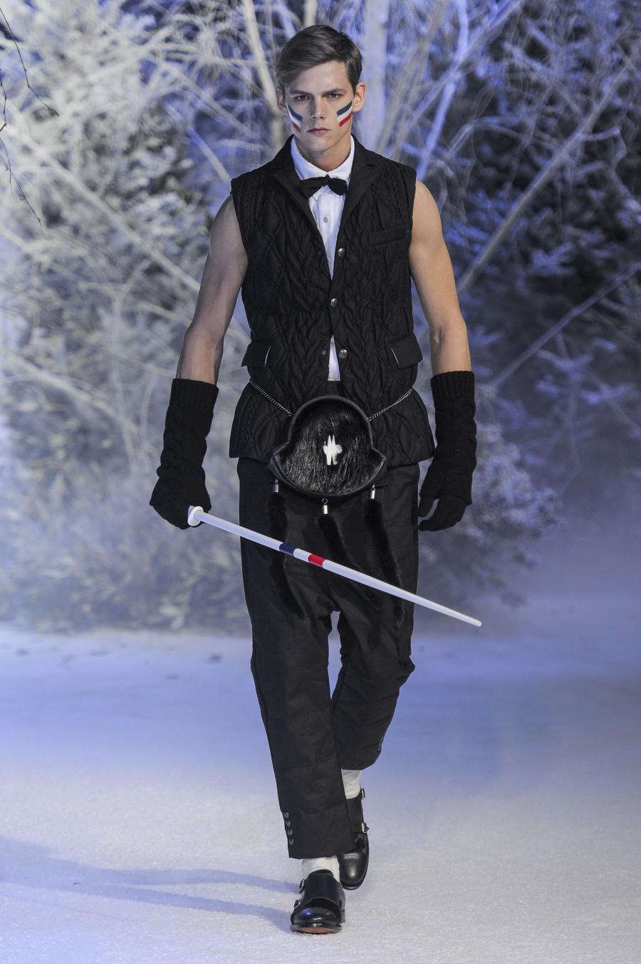 Milano, Gennaio 2013. Moncler, anche per questa prossima stagione, continua a mantenere salda la sinergia tra sensibilità sartoriale, che contraddistingue l'intero lavoro creativo di Thom Browne, e l'active sportswear, tratto distintivo della casa francese. Il concept dell'intera collezione ruota intorno all'immaginario della cultura giapponese, dove le uniformi di valorosi e coraggiosi samurai, richiamando le highland scozzesi nelle cromie di un profondo blu, rosso e nero, acquisiscono un valore più contemporaneo senza, però dimenticare la tradizione british. Valore aggiunto è rappresentato sempre dall'outwear, dove l'accurata scelta di materiali tecnici e l'abilità stilistica di Thom regalano capispalla in bilico tra passato e innovazione.