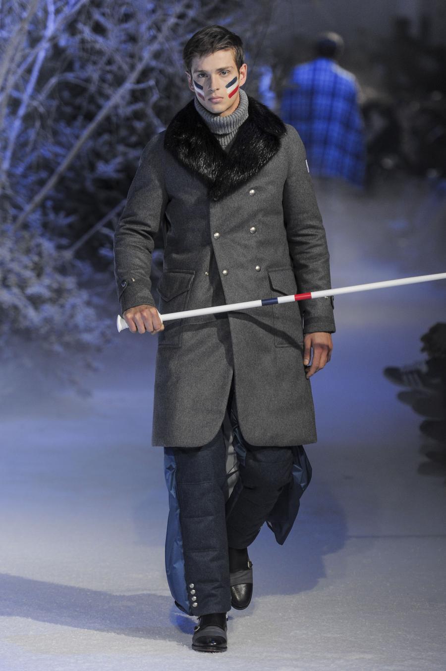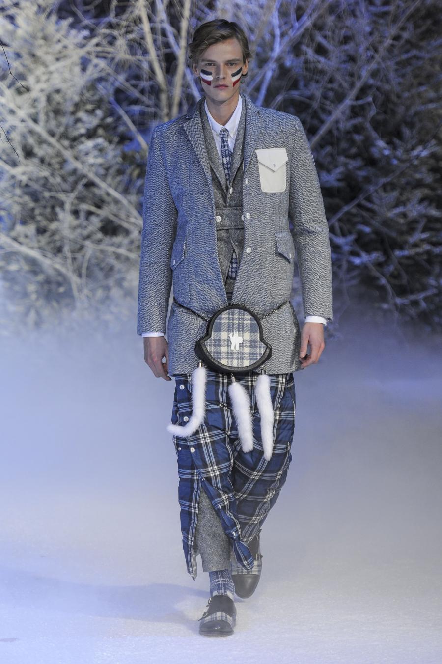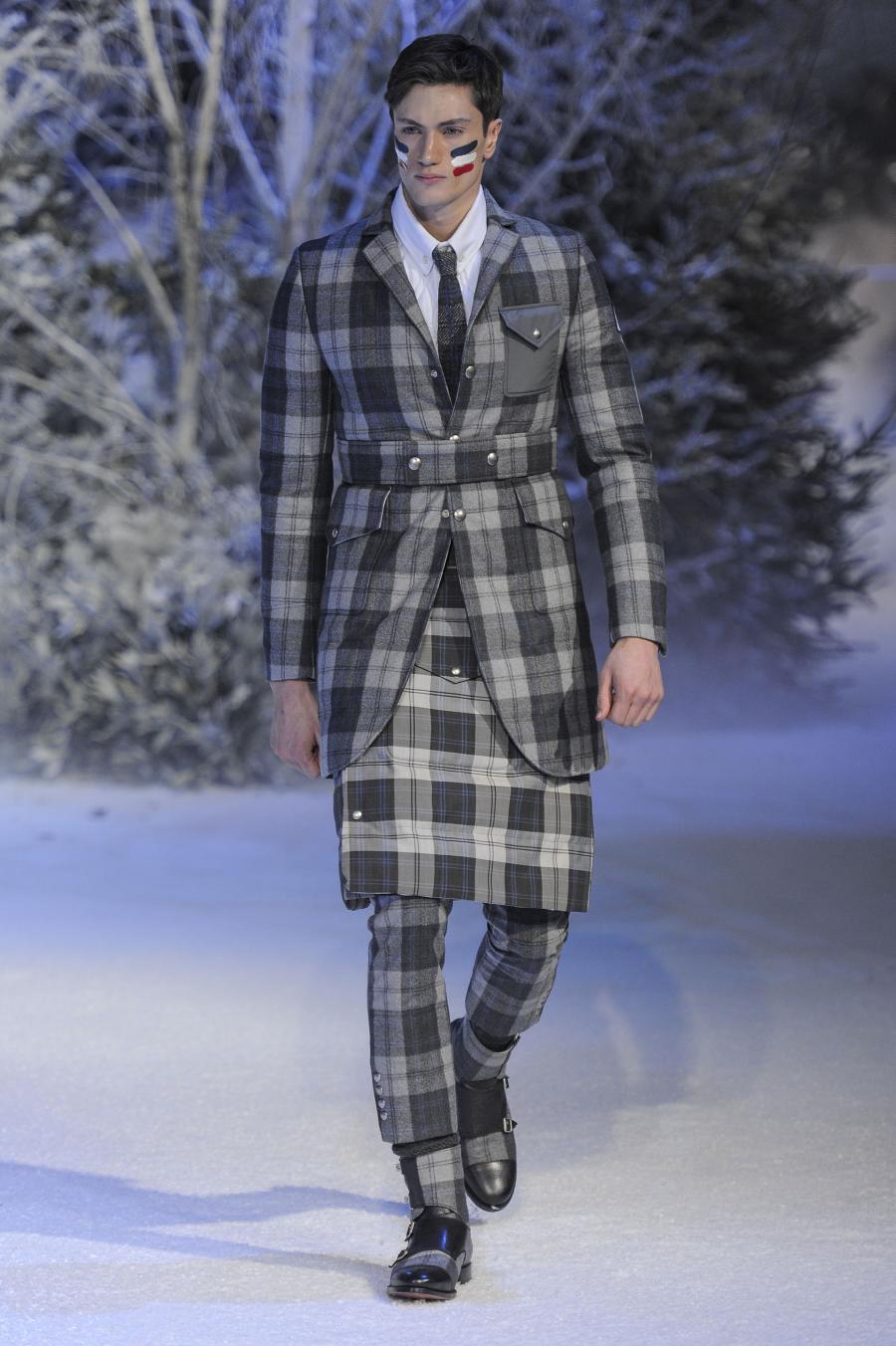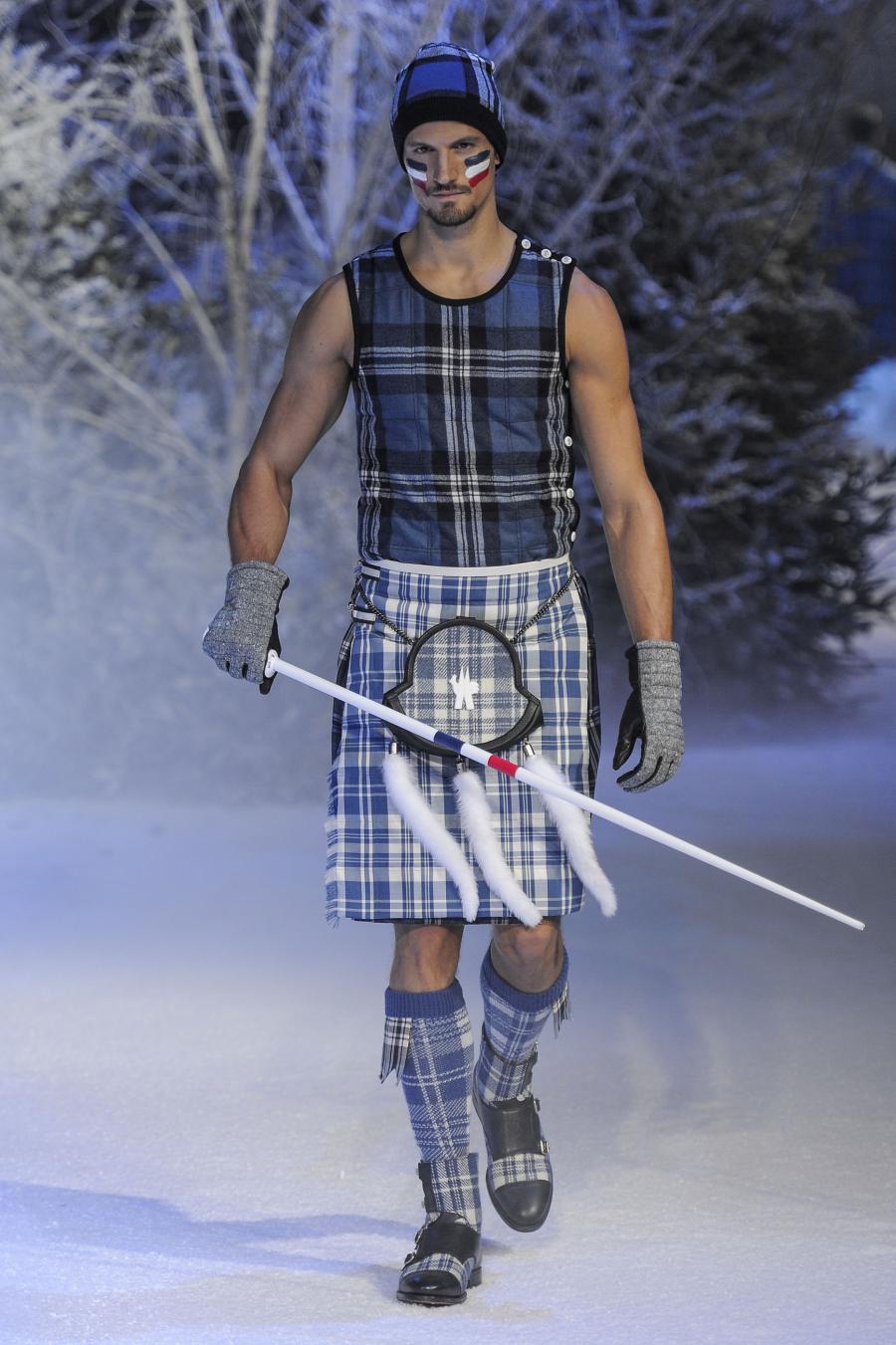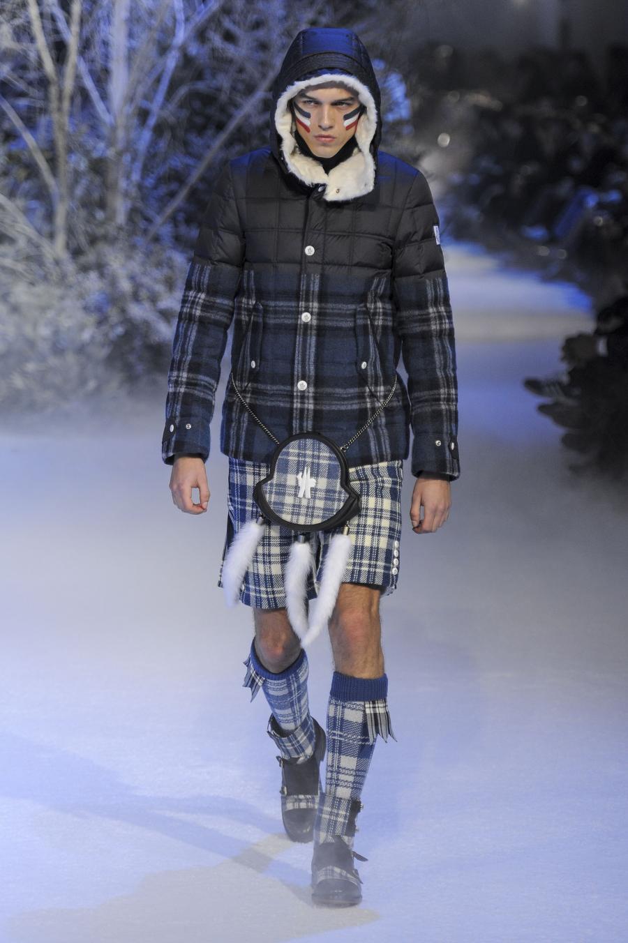 Milano, Gennaio 2013. Moncler, anche per questa prossima stagione, continua a mantenere salda la sinergia tra sensibilità sartoriale, che contraddistingue l'intero lavoro creativo di Thom Browne, e l'active sportswear, tratto distintivo della casa francese. Il concept dell'intera collezione ruota intorno all'immaginario della cultura giapponese, dove le uniformi di valorosi e coraggiosi samurai, richiamando le highland scozzesi nelle cromie di un profondo blu, rosso e nero, acquisiscono un valore più contemporaneo senza, però dimenticare la tradizione british. Valore aggiunto è rappresentato sempre dall'outwear, dove l'accurata scelta di materiali tecnici e l'abilità stilistica di Thom regalano capispalla in bilico tra passato e innovazione.