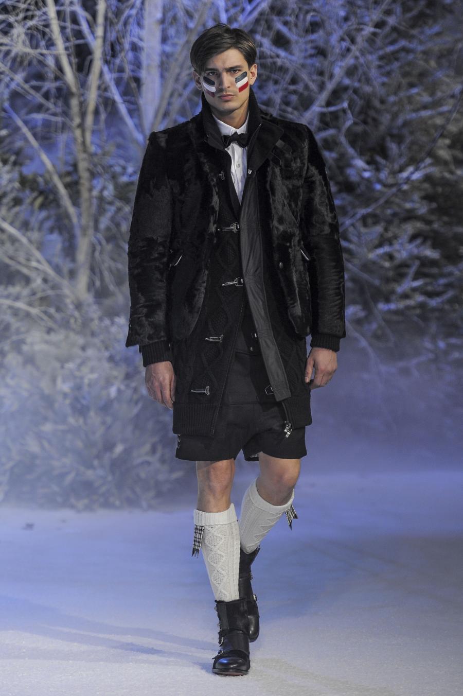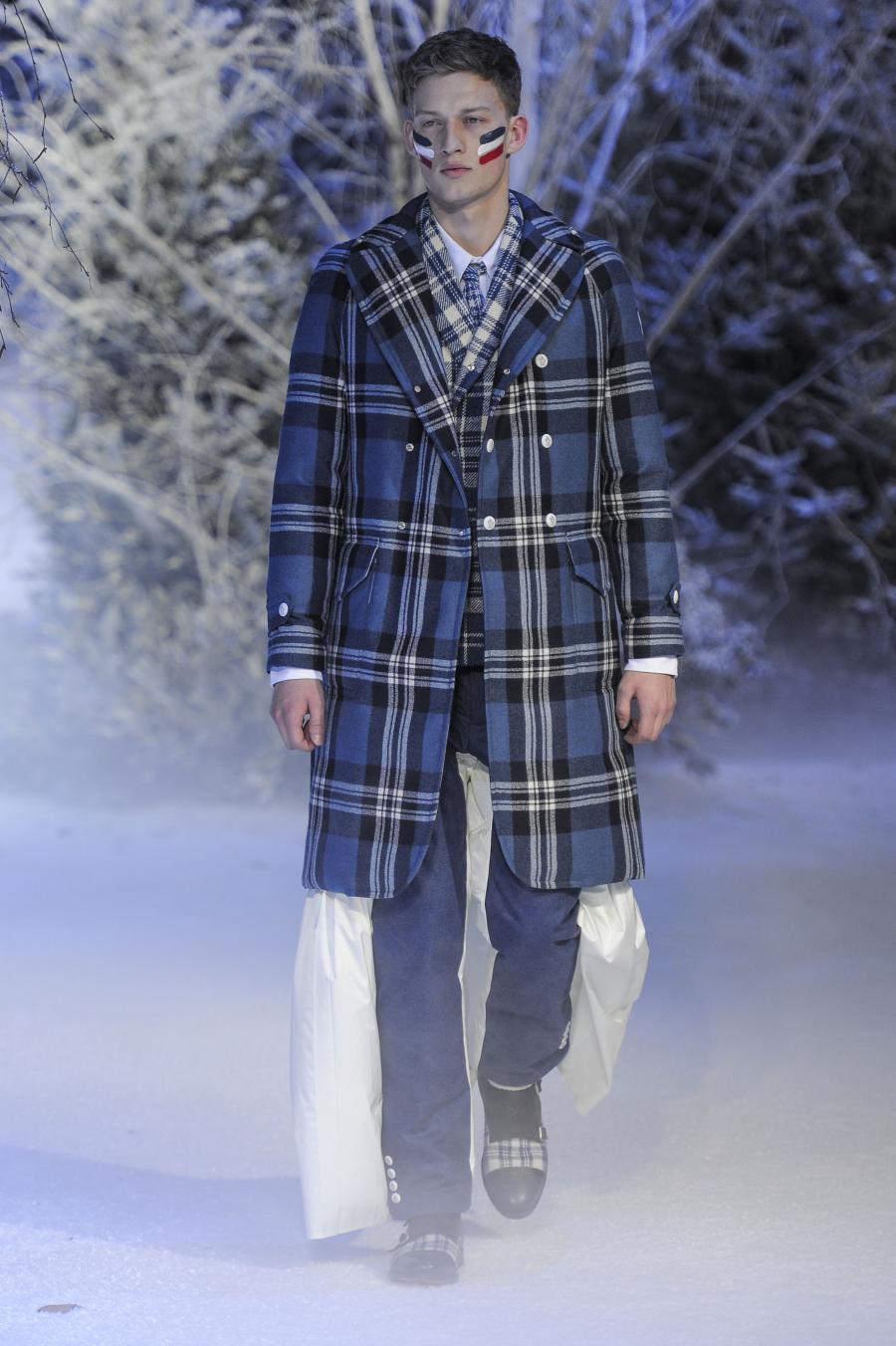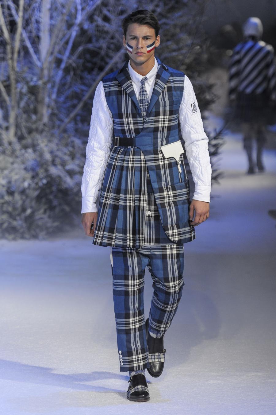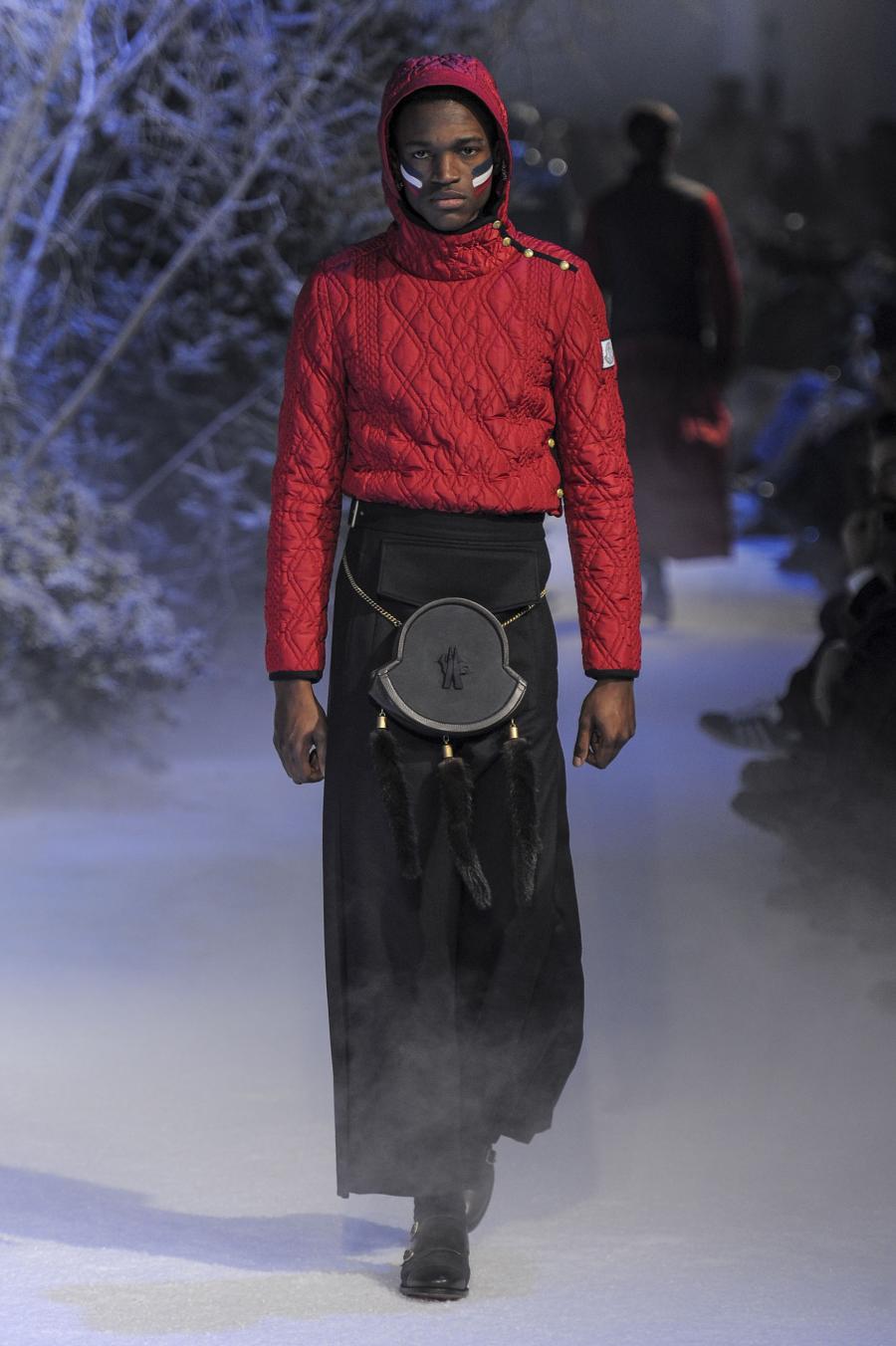 Milano, Gennaio 2013. Moncler, anche per questa prossima stagione, continua a mantenere salda la sinergia tra sensibilità sartoriale, che contraddistingue l'intero lavoro creativo di Thom Browne, e l'active sportswear, tratto distintivo della casa francese. Il concept dell'intera collezione ruota intorno all'immaginario della cultura giapponese, dove le uniformi di valorosi e coraggiosi samurai, richiamando le highland scozzesi nelle cromie di un profondo blu, rosso e nero, acquisiscono un valore più contemporaneo senza, però dimenticare la tradizione british. Valore aggiunto è rappresentato sempre dall'outwear, dove l'accurata scelta di materiali tecnici e l'abilità stilistica di Thom regalano capispalla in bilico tra passato e innovazione.