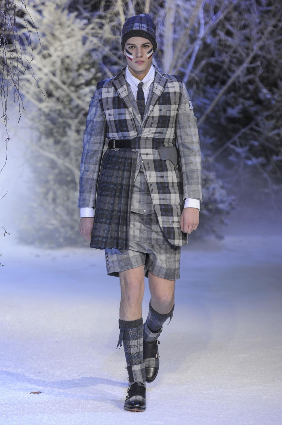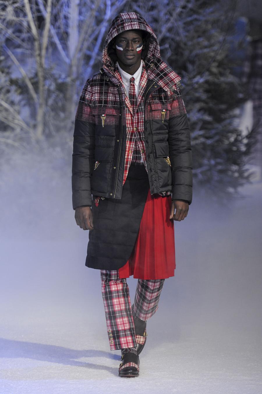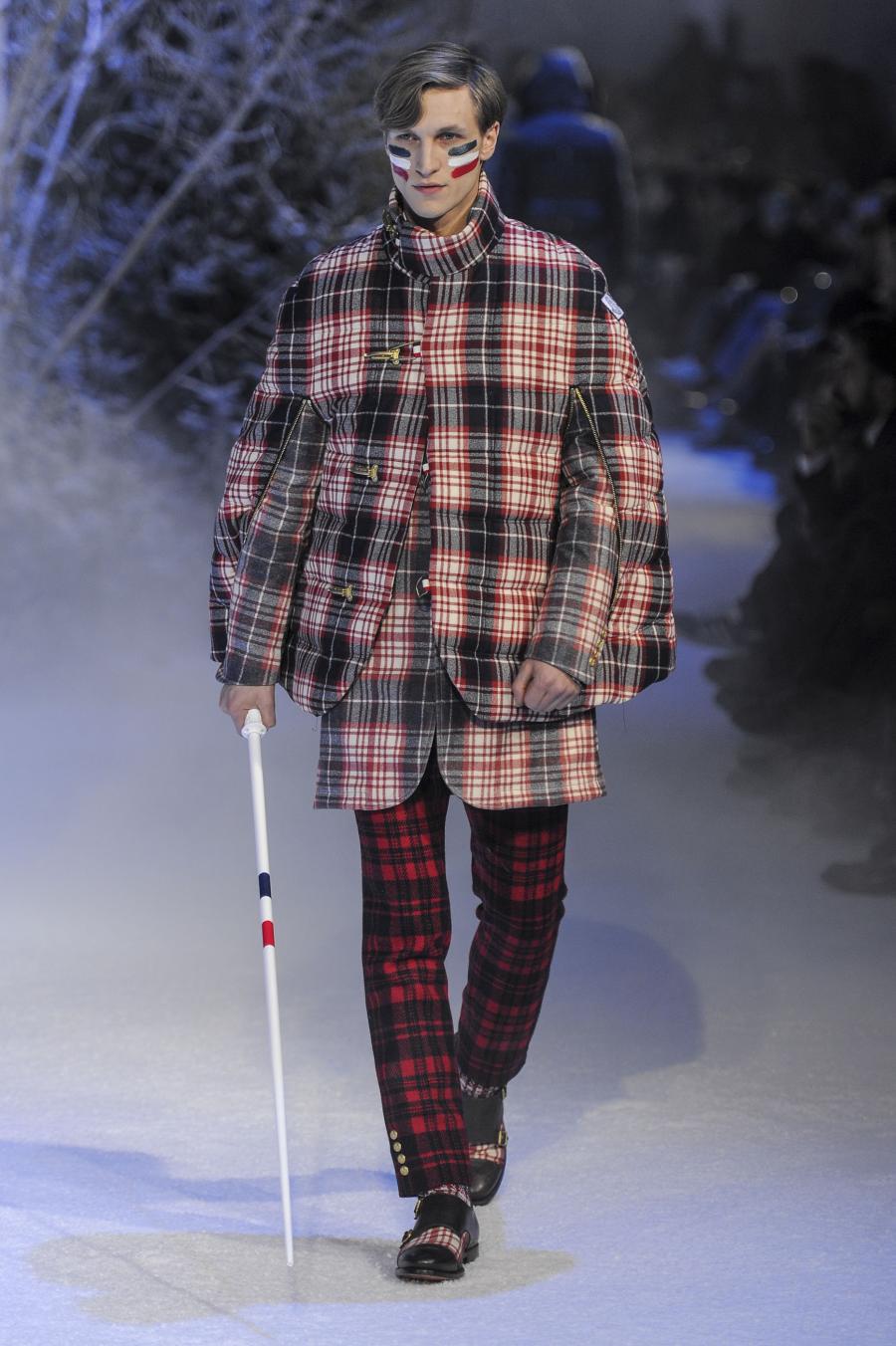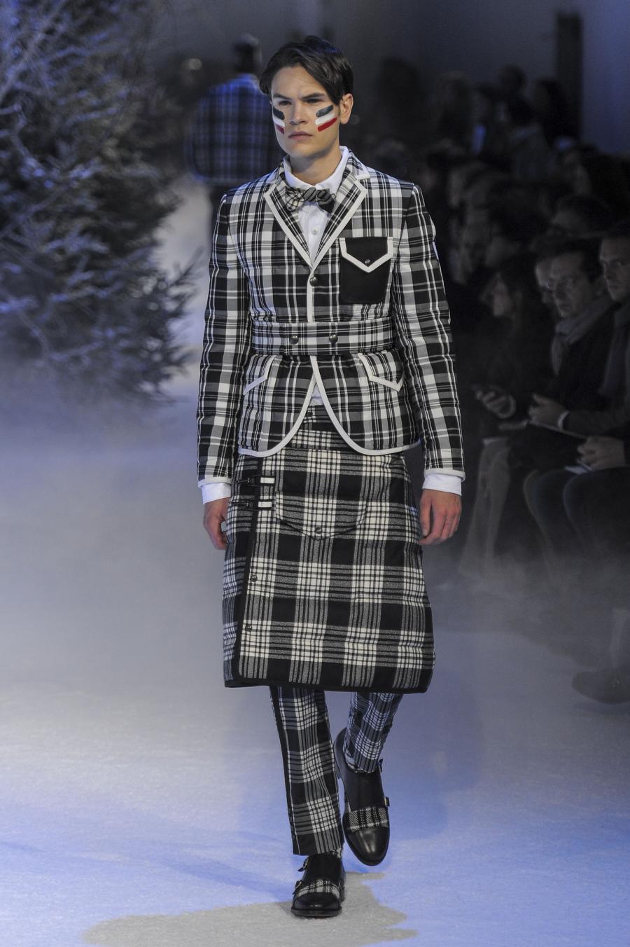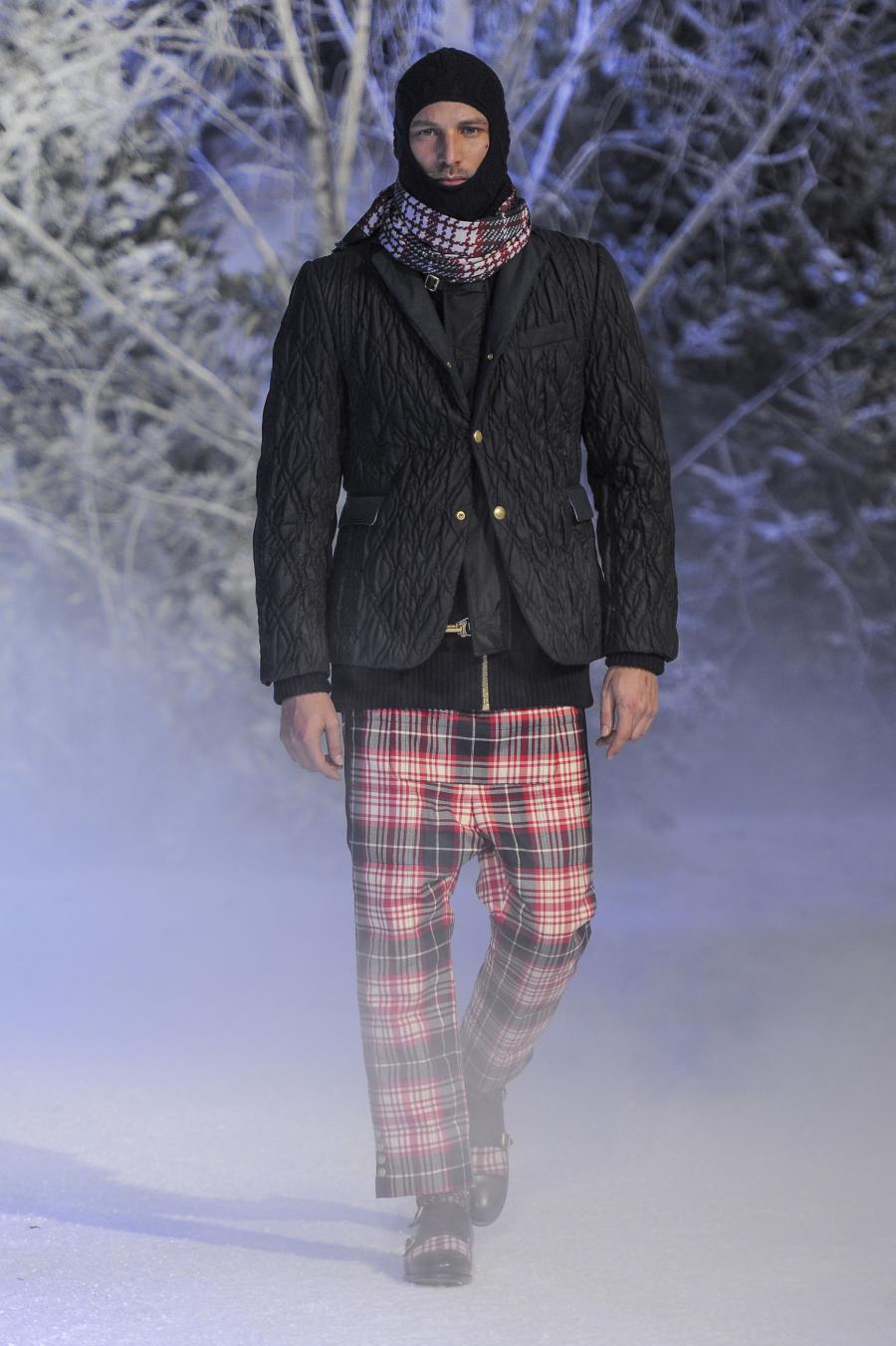 Milano, Gennaio 2013. Moncler, anche per questa prossima stagione, continua a mantenere salda la sinergia tra sensibilità sartoriale, che contraddistingue l'intero lavoro creativo di Thom Browne, e l'active sportswear, tratto distintivo della casa francese. Il concept dell'intera collezione ruota intorno all'immaginario della cultura giapponese, dove le uniformi di valorosi e coraggiosi samurai, richiamando le highland scozzesi nelle cromie di un profondo blu, rosso e nero, acquisiscono un valore più contemporaneo senza, però dimenticare la tradizione british. Valore aggiunto è rappresentato sempre dall'outwear, dove l'accurata scelta di materiali tecnici e l'abilità stilistica di Thom regalano capispalla in bilico tra passato e innovazione.